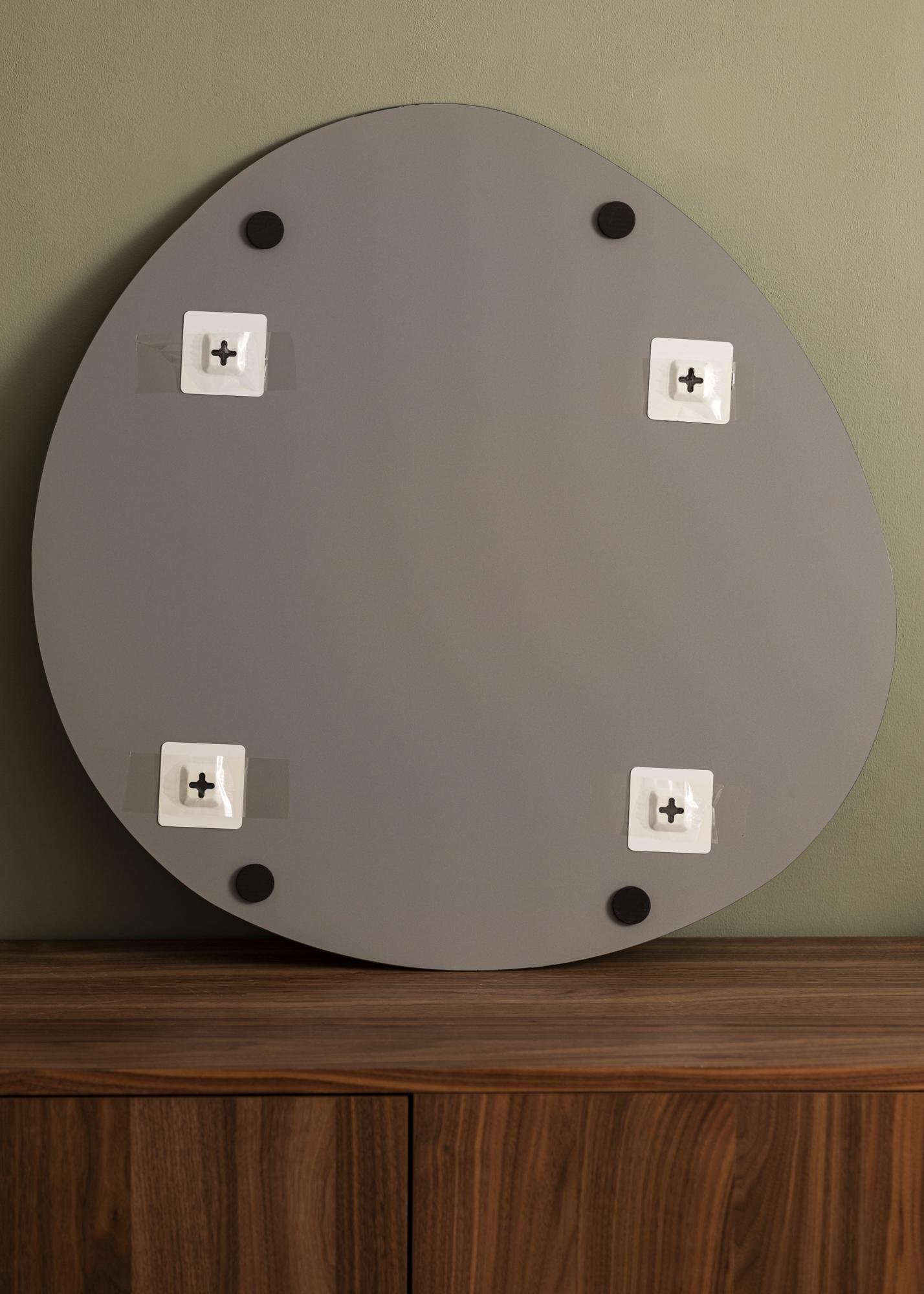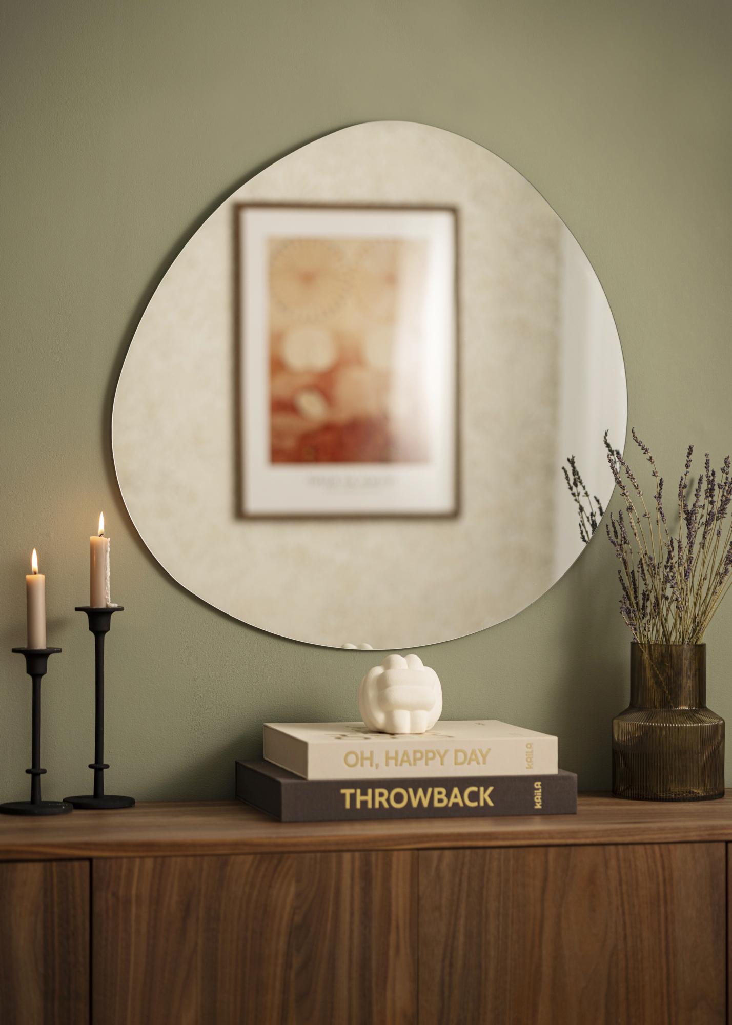 Descoperă oglinda elegantă și versatilă care devine un punct de atracție natural în fiecare cameră. Cu dimensiunile sale generoase de 70x70 cm, această oglindă oferă o funcție practică și decorativă în casa ta. Forma sa rotunjită, cu o curbură ușoară în partea de sus, adaugă o senzație organică și relaxată camerei, păstrând în același timp o estetică modernă.