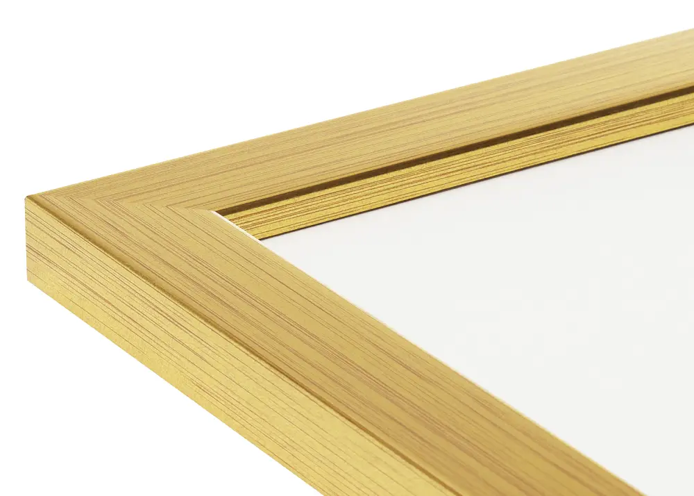 Cadrul simplu auriu de 22 mm se potrivește perfect atunci când dorești o oglindă elegantă în orice format. Perfect și ca un detaliu elegant în peretele tău de tablouri.