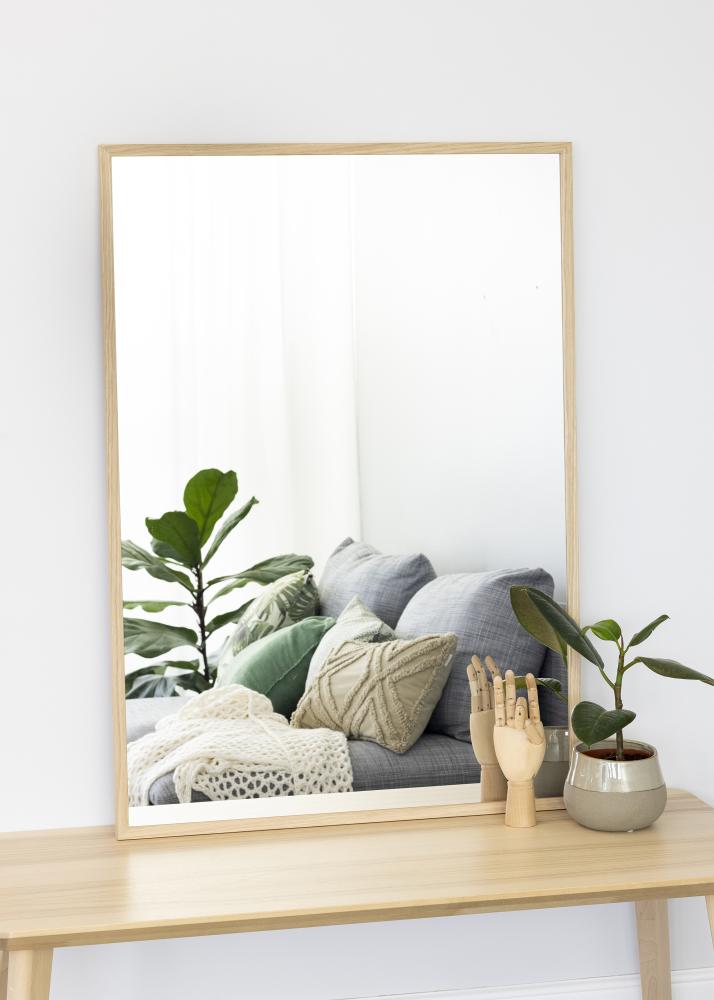 Lăsați această oglindă cu o ramă din lemn de înaltă calitate din stejar să vă înfrumusețeze casa! Rama constă într-o listă de pin cu furnir autentic de stejar deasupra. Suprafața este netratată, ceea ce înseamnă că puteți alege să vopsiți sau să colorați rama după cum doriți, sau să lăsați structura rustică și elegantă a stejarului să predomine. Posibilitățile variate fac ca această oglindă să se potrivească în orice casă și să devină un detaliu atemporal. Această oglindă de perete măsoară 70x100 cm și are un geam de oglindă transparent. Lista ramei este de 17 mm lățime și 22,5 mm adâncime. Oglinda are suporturi de perete.
