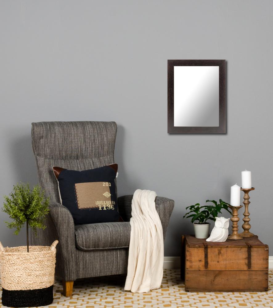 O oglindă maro închis creează un contrast și aduce caracter peretelui tău. Aici avem un model elegant care arată bine atât într-o casă simplă și minimalistă, cât și într-una mai plină de culoare. Rama este relativ lată și este vopsită într-o culoare maro închis prin care se întrevede structura lemnului. Deoarece este fabricată de personal priceput în propria noastră atelieră de rame, te poți aștepta la o oglindă atrăgătoare de bună calitate!