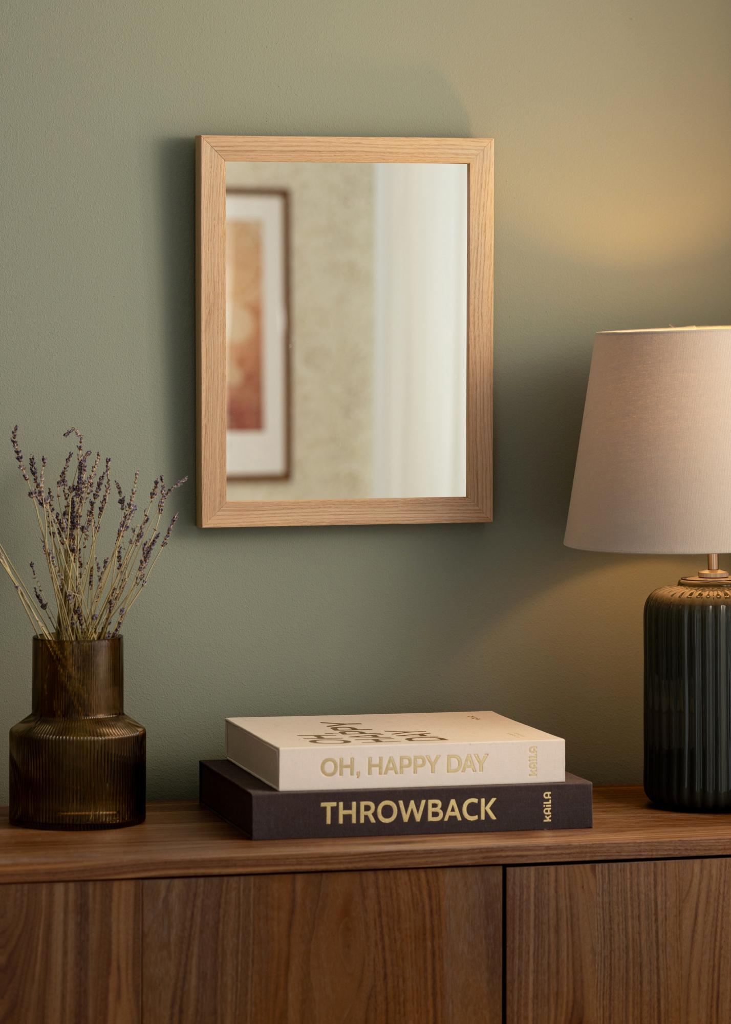 Rama este realizată din pin, ceea ce o face atât durabilă, cât și ușoară. Adâncimea de 32 mm conferă oglinzii o construcție stabilă și o face să stea sigură pe perete. Tonul cald al modelului de stejar subliniază designul atemporal al oglinzii și o face ușor de asortat cu diferite stiluri de decor.