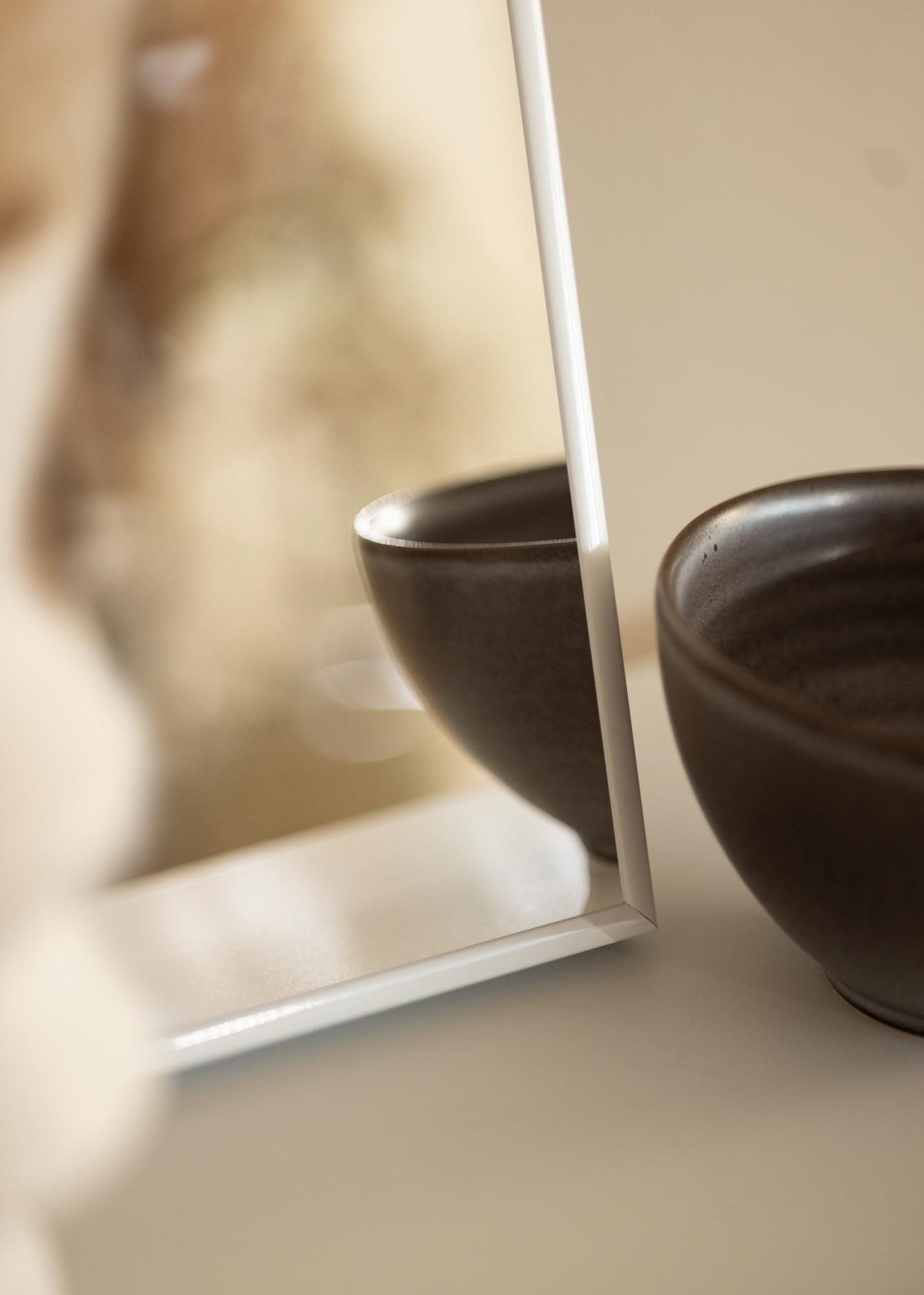 Copenhaga Alb are un cadru simplu de aluminiu care se potrivește perfect atunci când cauți o oglindă simplă și discretă.