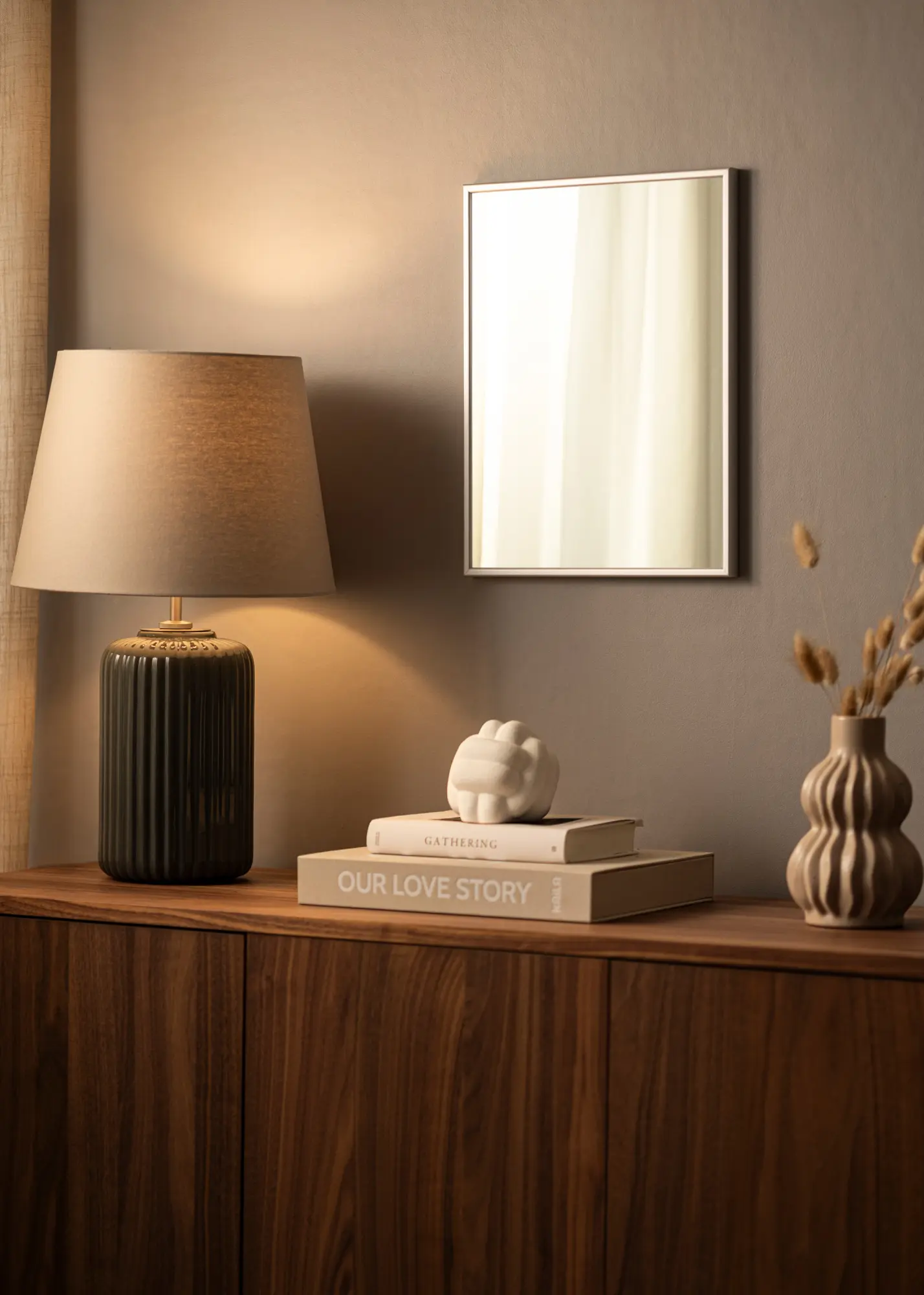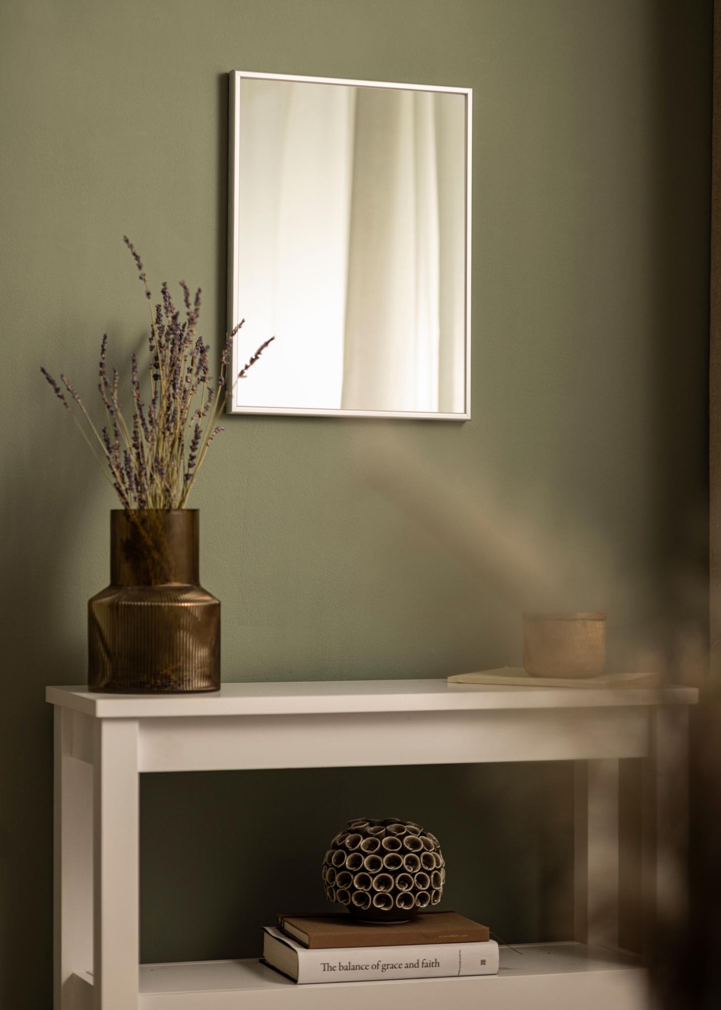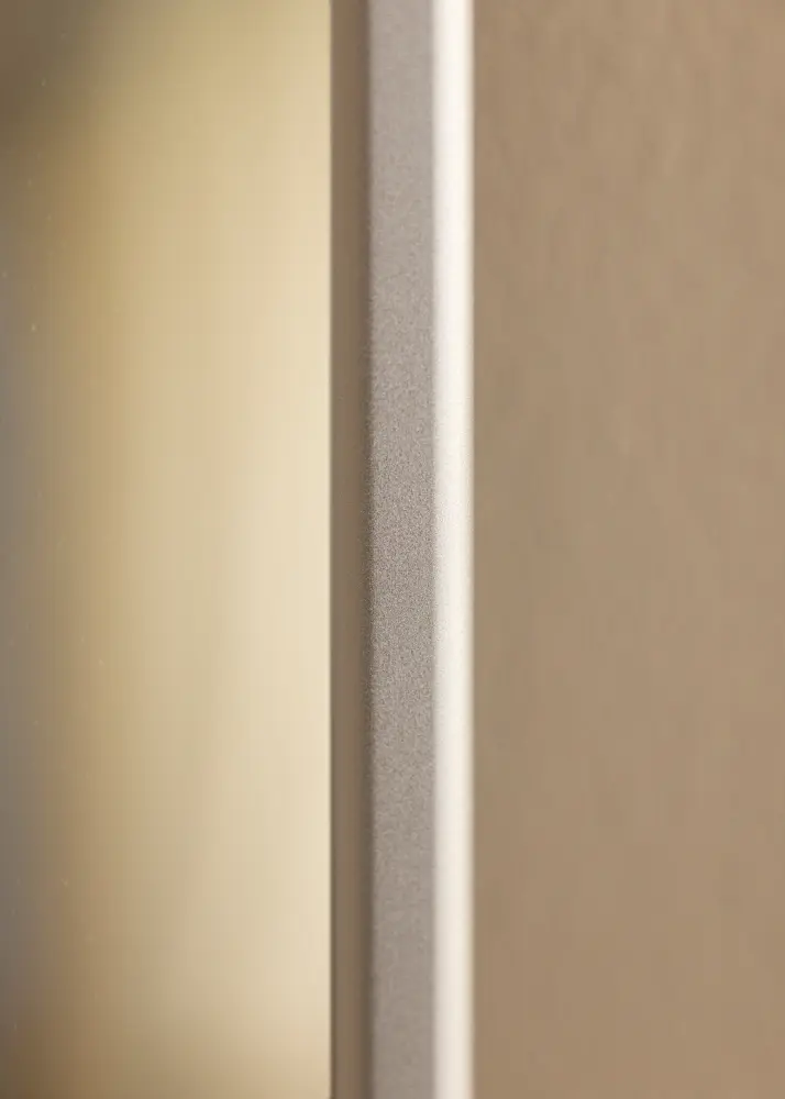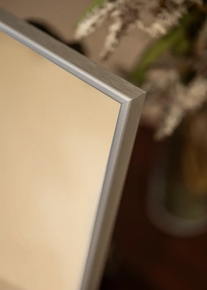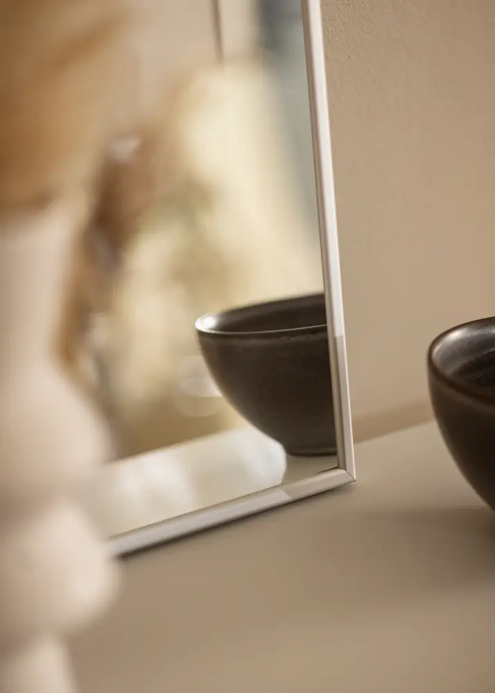 Copenhaga Argintiu are un cadru simplu de aluminiu care se potrivește perfect atunci când cauți o oglindă simplă și discretă.