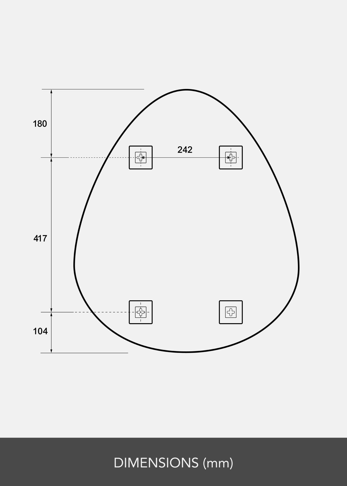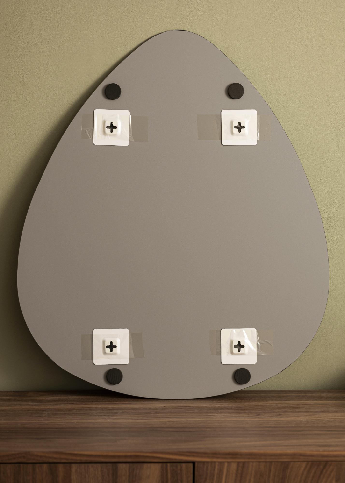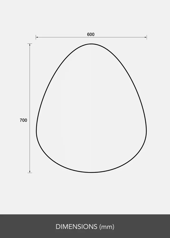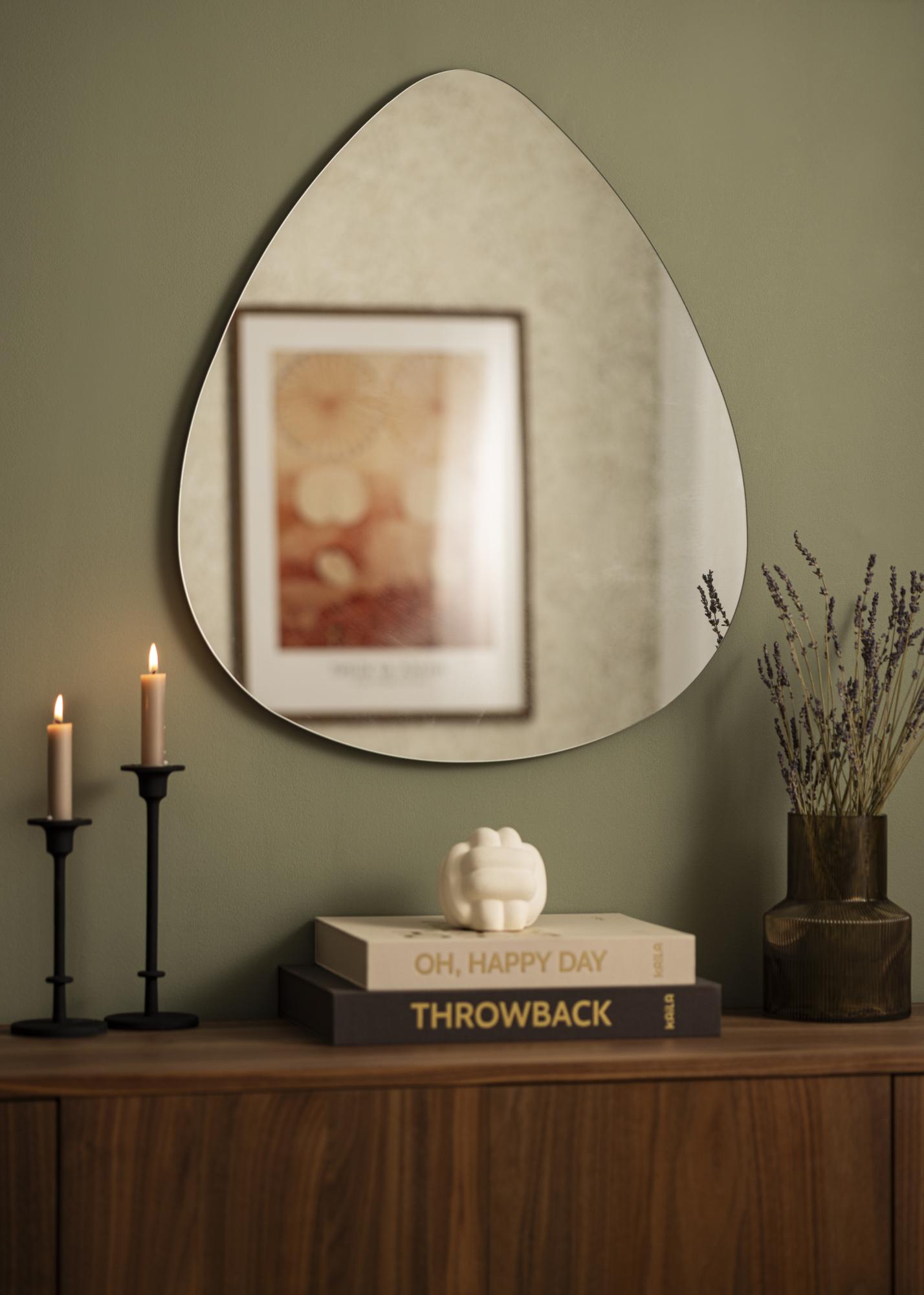 Designul oglinzii este atât modern, cât și atemporal, cu un vârf lat, îngustat și rotunjit, care creează o siluetă distinctă în formă de picătură. Această formă conferă o delicatețe și o senzație organică camerei, făcând oglinda să se potrivească într-o varietate de stiluri de decor interior.