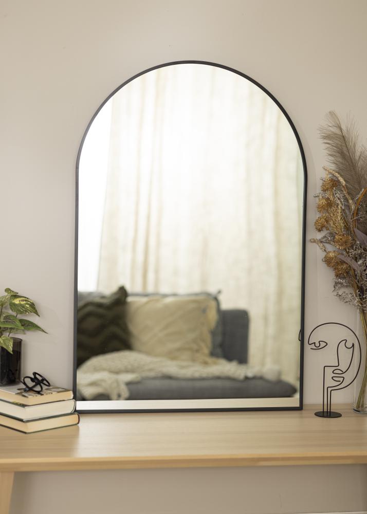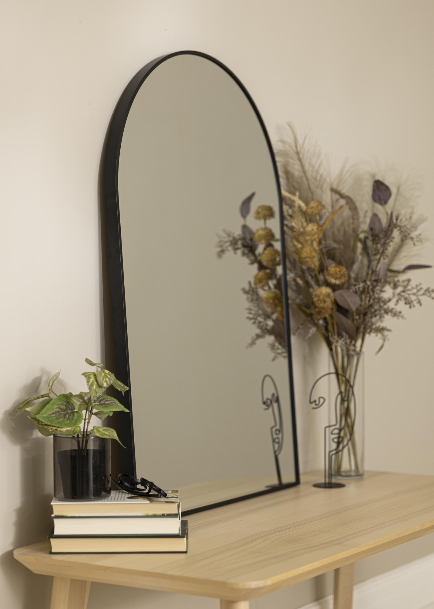 Aceasta este o alegere excelentă pentru tine dacă cauți o oglindă cu un design modern și un cadru elegant, arcuit, de culoare neagră. Cadrul oglinzii are o adâncime de 28 mm și este fabricat din metal. Această oglindă devine un element decorativ în hol sau în sufragerie, unde va reflecta lumina din toate sursele de lumină ale camerei într-un mod frumos. Materialul robust face ca oglinda să fie potrivită și pentru utilizarea în baie.