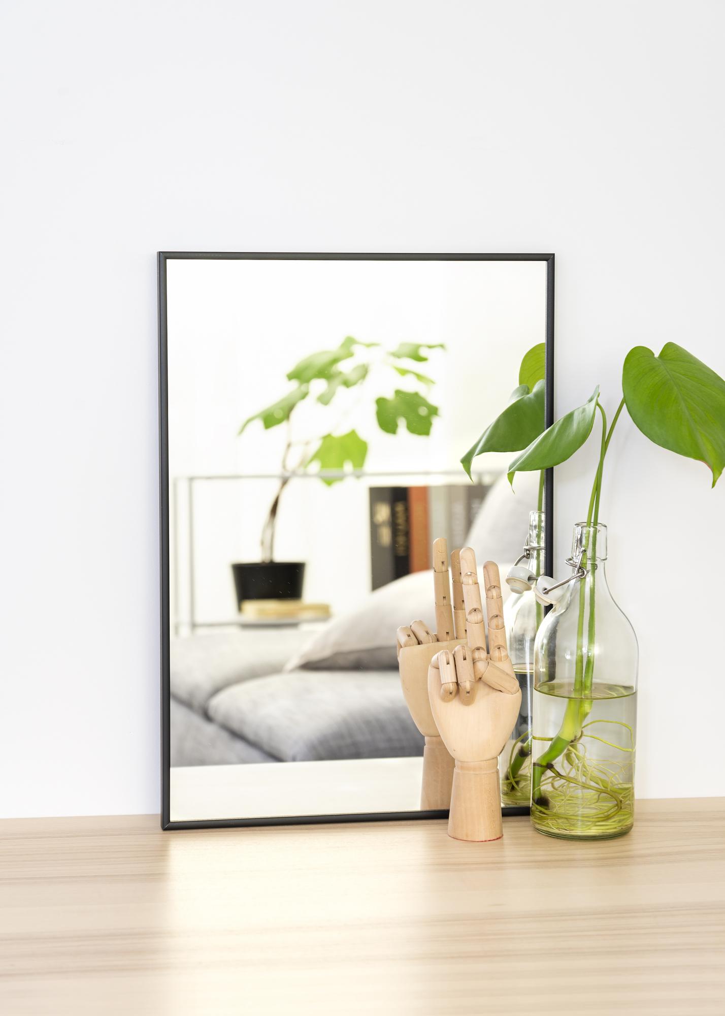 Găsiți rama potrivită »O oglindă elegantă cu ramă de aluminiu neagră. Oglinda este echipată cu suporturi de perete inteligente, care o fac ușor de agățat.
