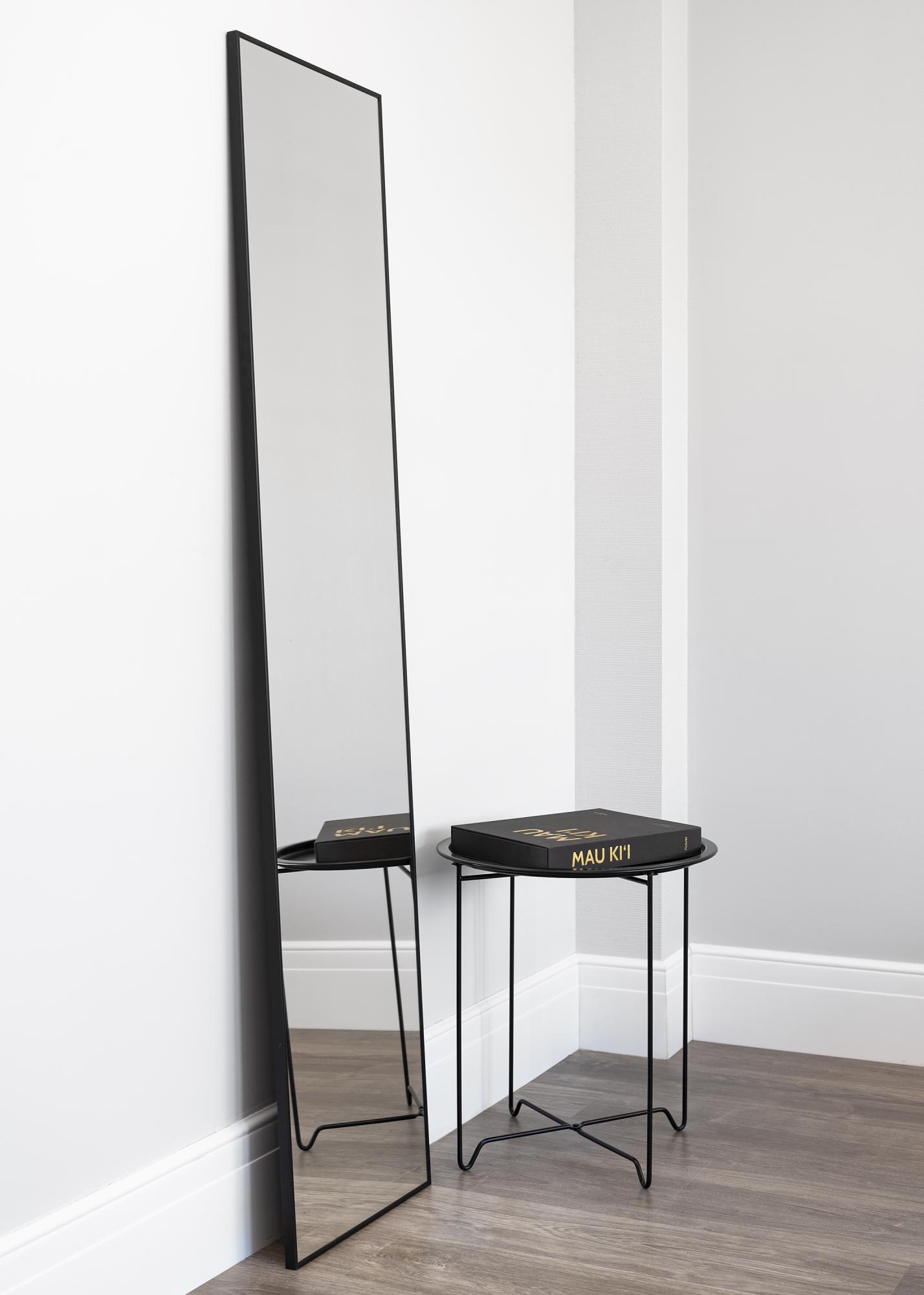 Oglindă în mărime naturală cu ramă din aluminiu negru și o suprafață de oglindă de 40 x 170 cm, care, în ciuda dimensiunii sale, se montează ușor pe perete datorită sistemelor de fixare inteligente.