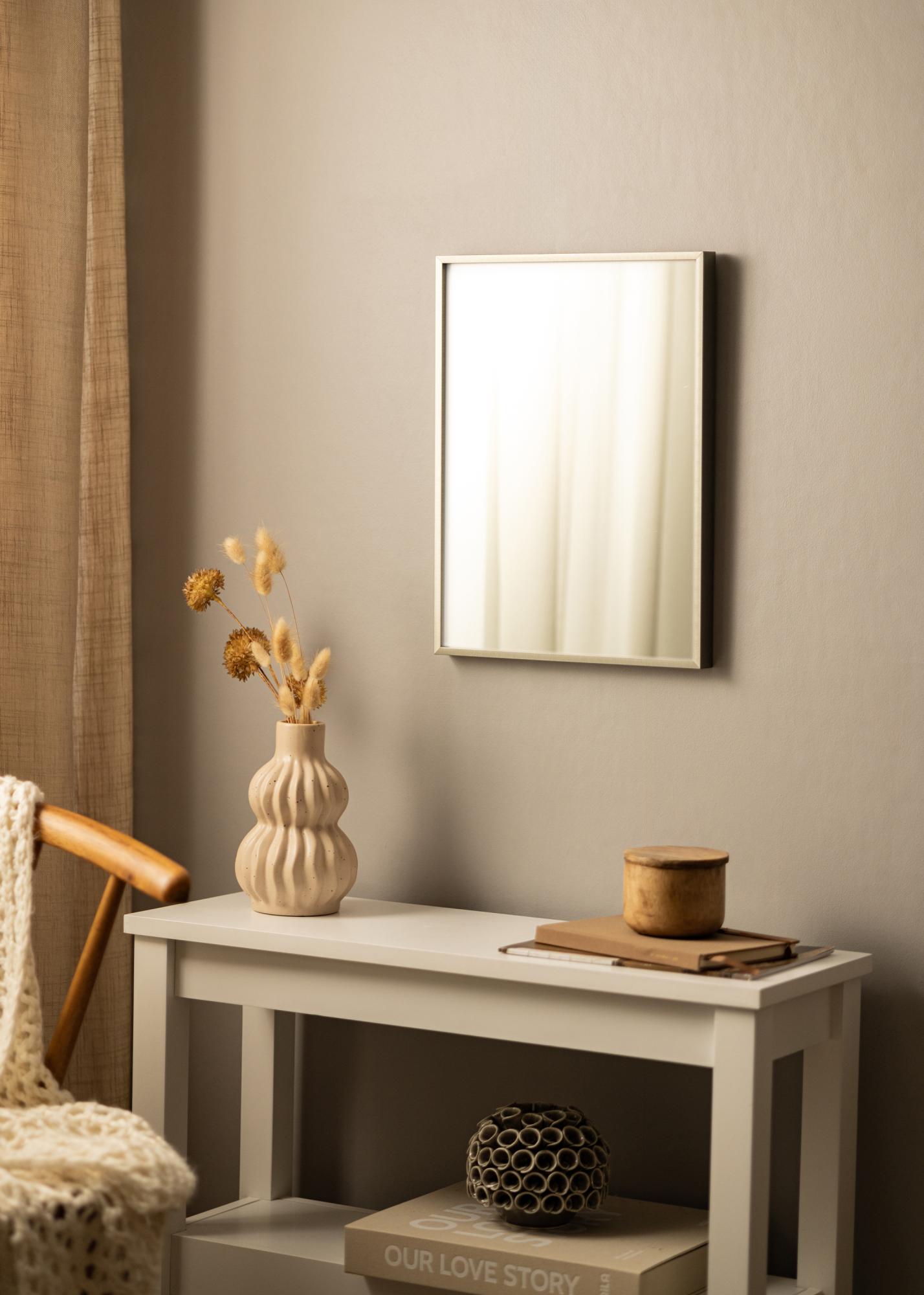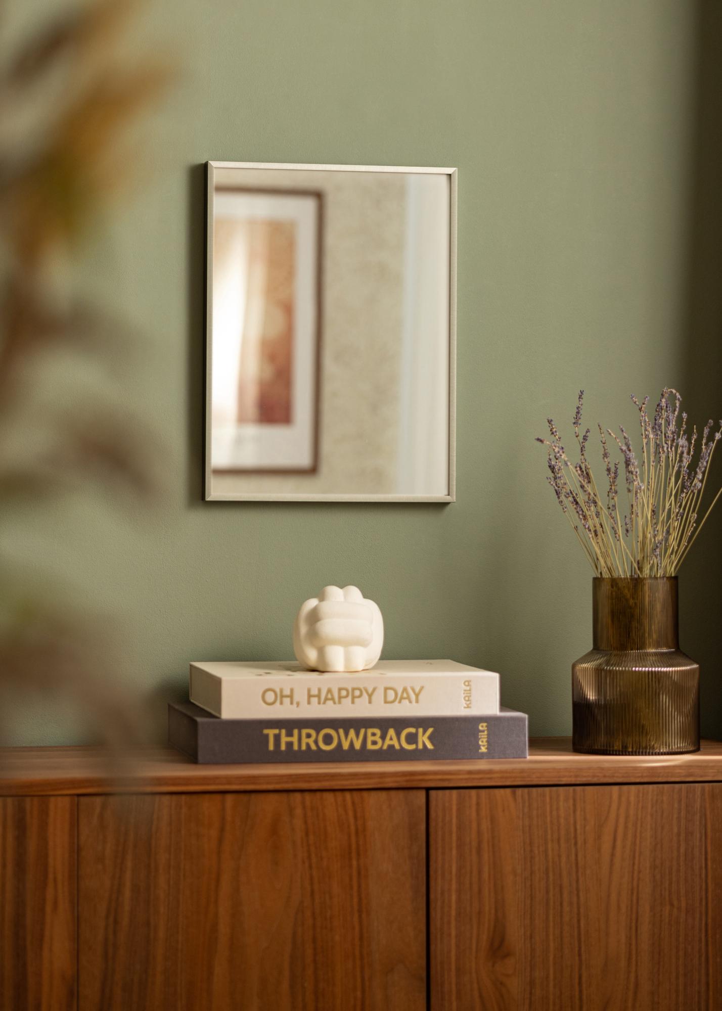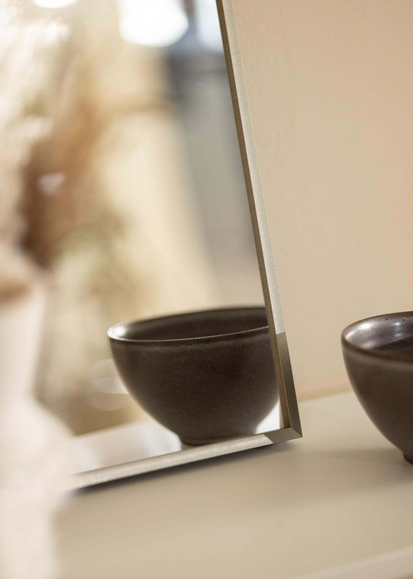 Această oglindă are o frumoasă culoare argintie care oferă un aspect atemporal și sofisticat. Rama are o lățime de 7,8 mm și este fabricată din aluminiu, oferind oglinzii o construcție robustă și durabilă, menținând în același timp o senzație de ușurință și flexibilitate. Adâncimea de 25,9 mm face ca oglinda să stea ferm pe perete și să ofere un aspect elegant.