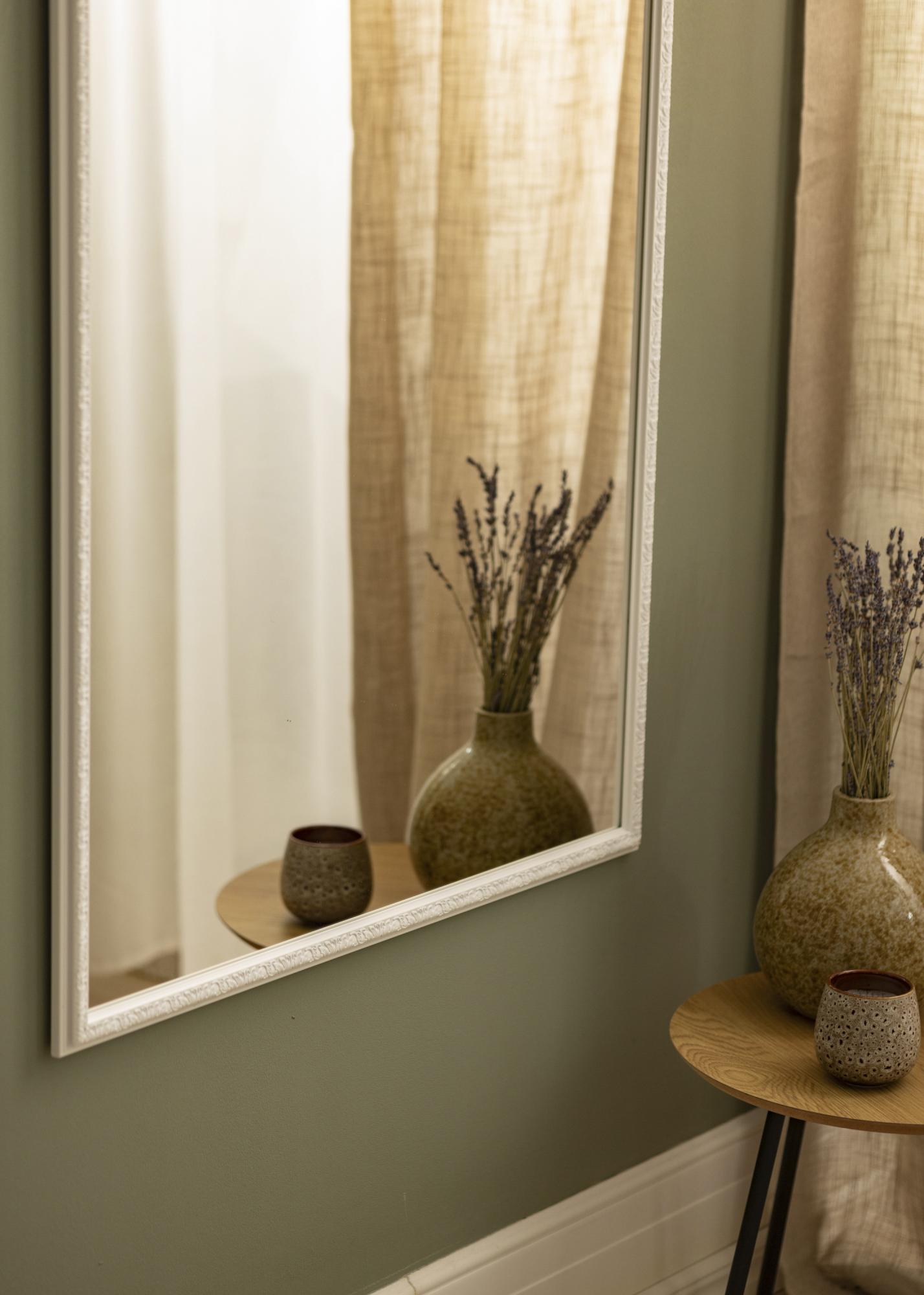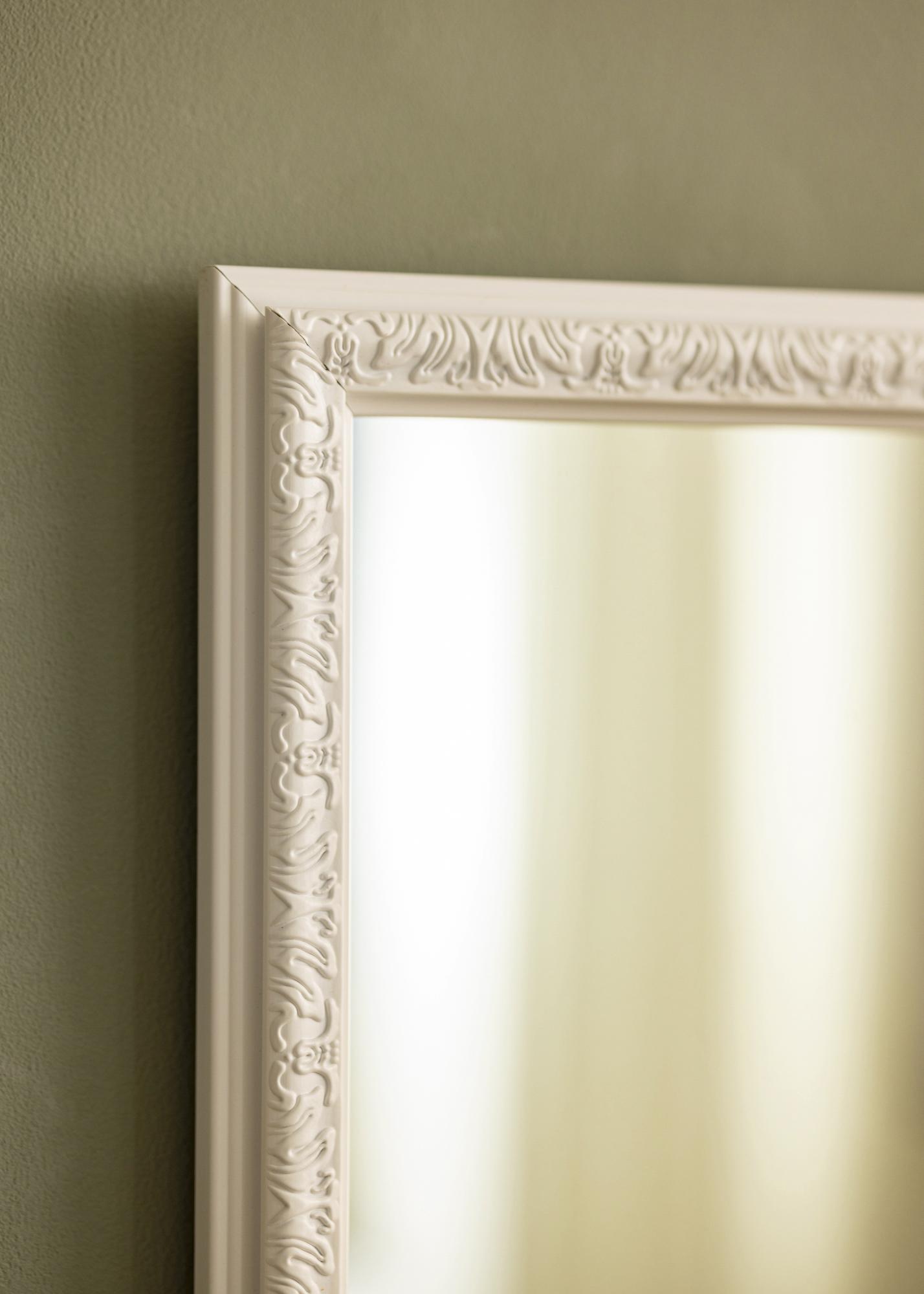 Această oglindă de perete este un element decorativ elegant care reflectă frumos lumina de la toate sursele de lumină din cameră. Rama albă oferă un aspect luminos și proaspăt, care este perfect completat de profilul decorativ și de modelele frumoase ale ramei.