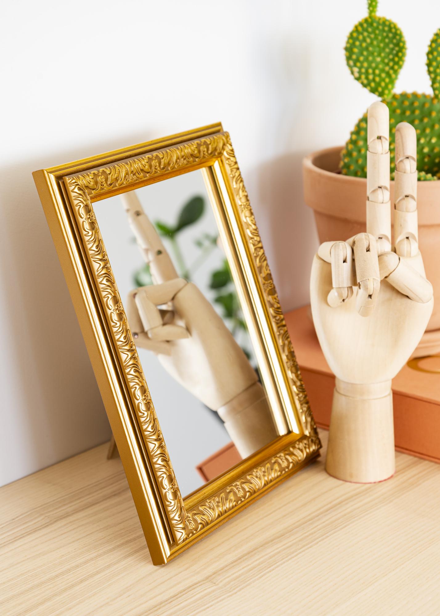 Găsiți rama potrivită »Nost Guld este o serie de oglinzi de perete. Rama este bogat decorată cu simboluri neregulate care oferă o impresie ușor misterioasă.