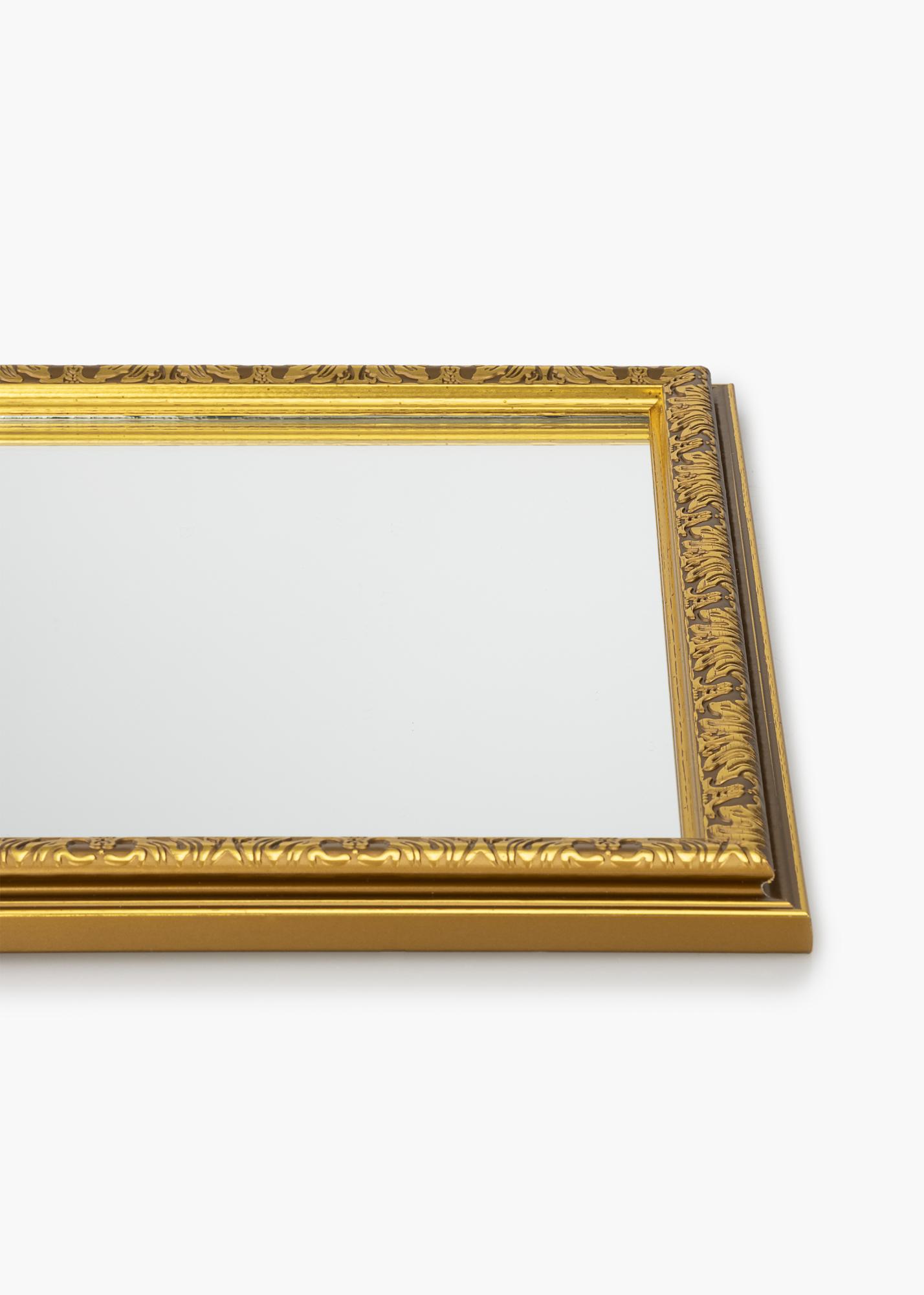 Sunteți în căutarea unei oglinzi aurii luxoase? Puteți să vă opriți din căutat acum. Nostalgia Aurie este o oglindă de perete cu o ramă de 2,8 cm lățime cu un profil elegant și un model decorativ frumos. Sticla oglinzii va reflecta lumina în camera dumneavoastră, în timp ce oglinda însăși devine un detaliu stilat pe perete. Pe partea din spate există un suport de perete pentru o montare mai ușoară.