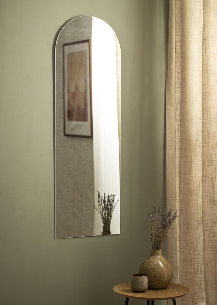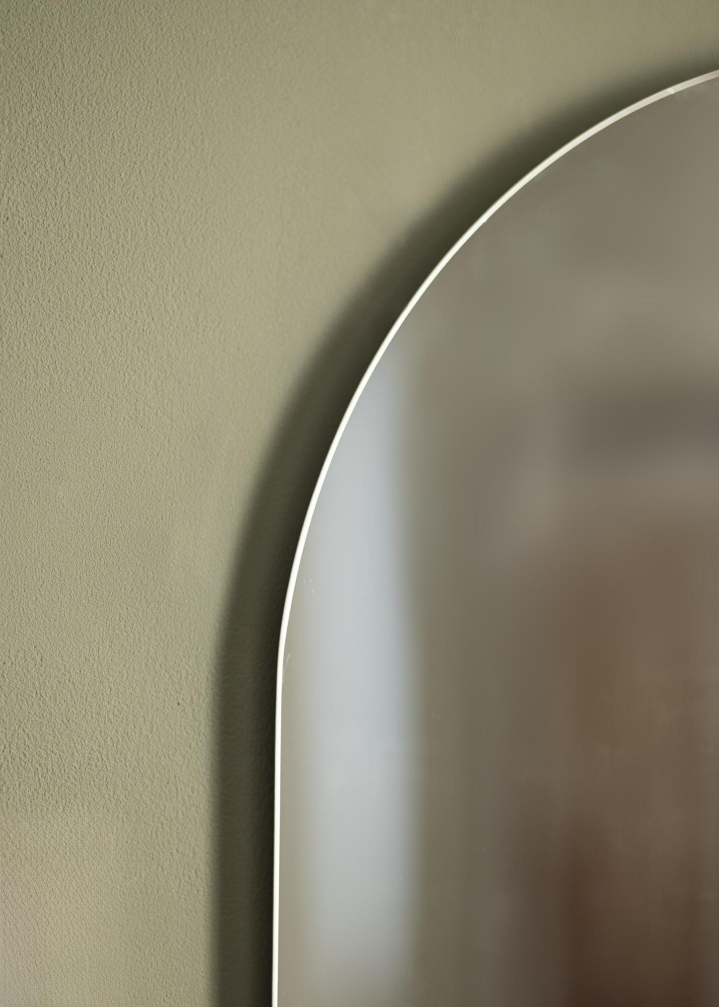 Aceasta este o oglindă de perete alungită care se potrivește perfect ca oglindă de corp întreg în hol sau dormitor. Este, de asemenea, foarte atrăgătoare să o plasezi deasupra unei piese de mobilier – de exemplu, o masă de consolă sau o servantă – pentru a crea un contrast dinamic. Oglinda de perete are un design minimalist cu o formă arcuită fără ramă de oglindă. Sticla oglinzii este subțire, pentru un plus de eleganță.