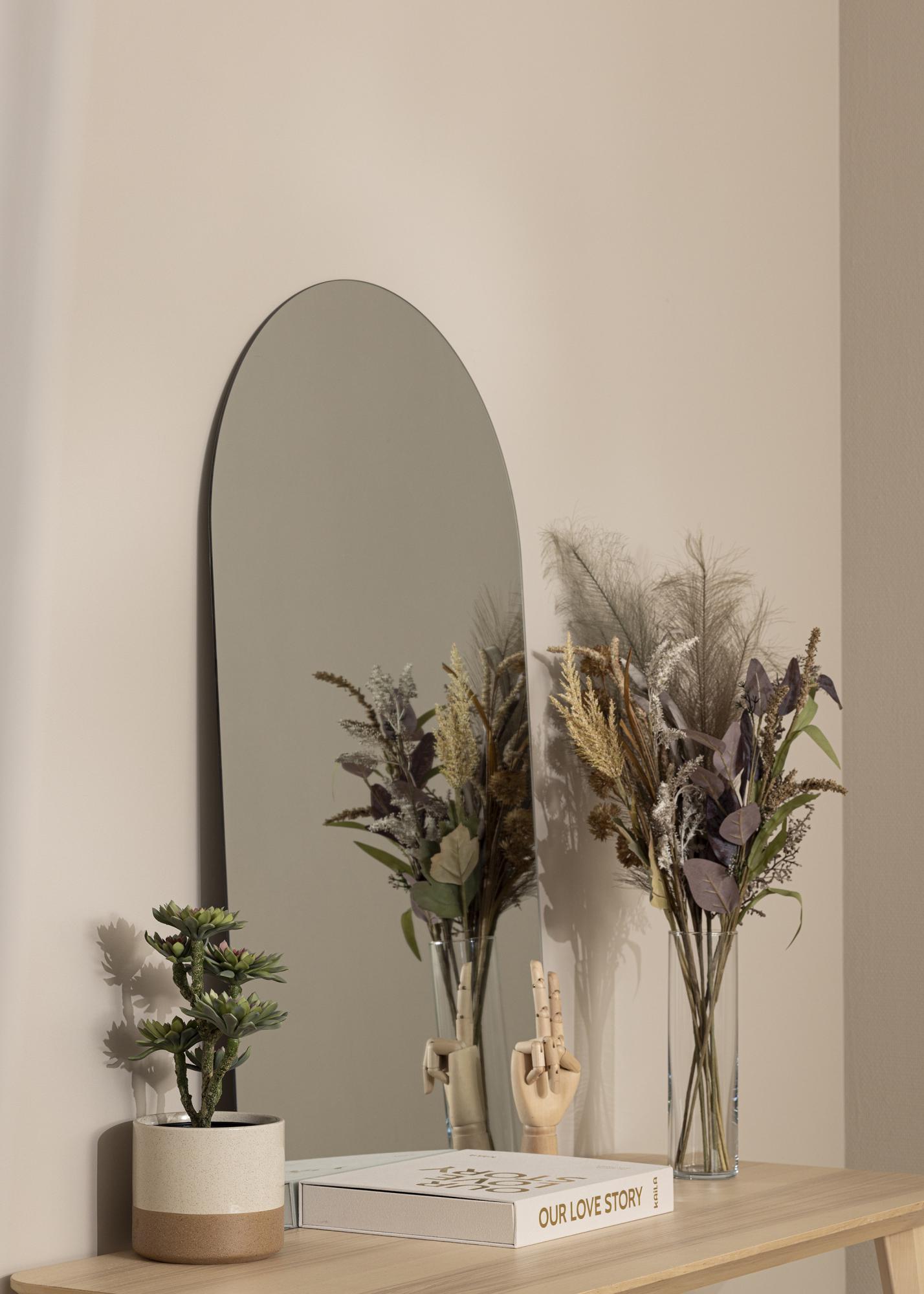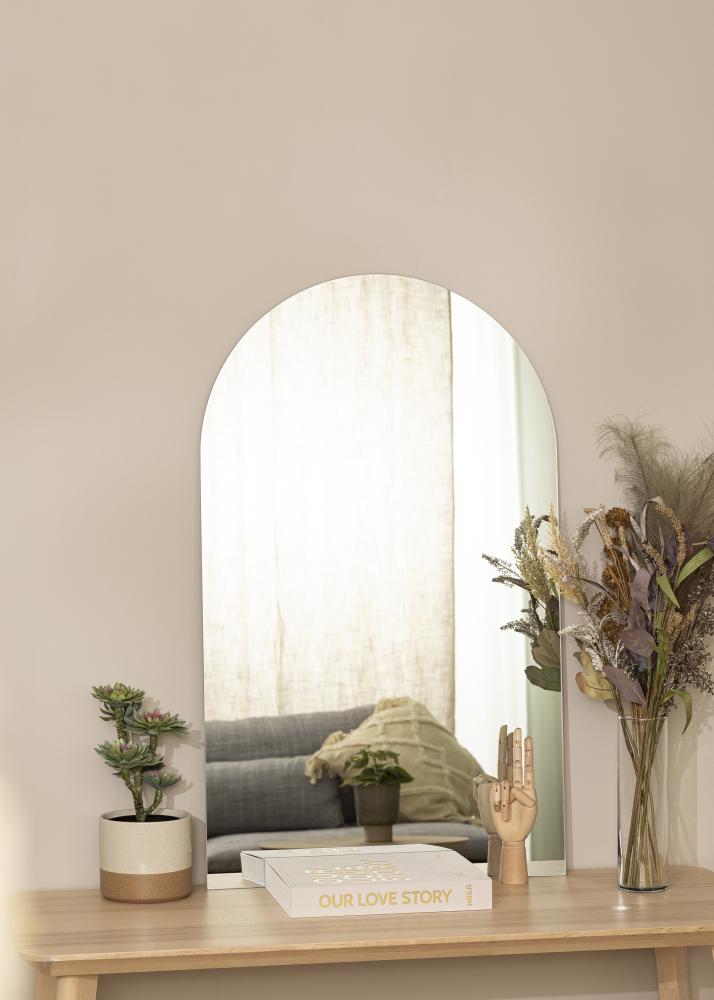 Aceasta este o oglindă foarte elegantă cu un geam de oglindă subțire și un design clasic în formă de arc. Oglinda nu are ramă, ceea ce îi conferă un aspect minimalist. Această oglindă de perete are prinderi pe spate, pentru o montare mai ușoară în camera dorită.