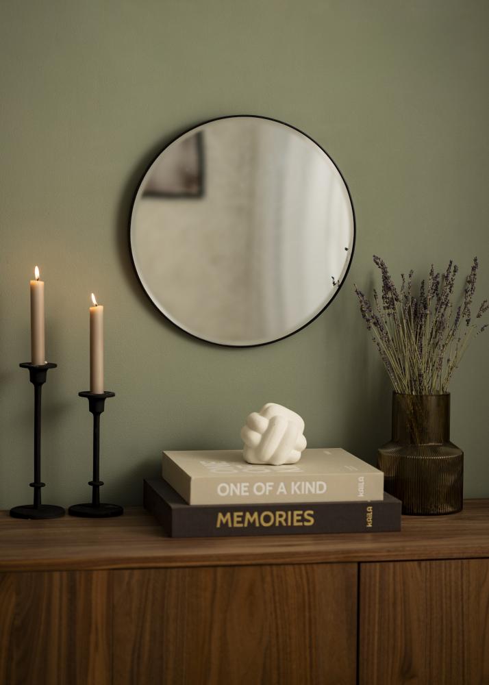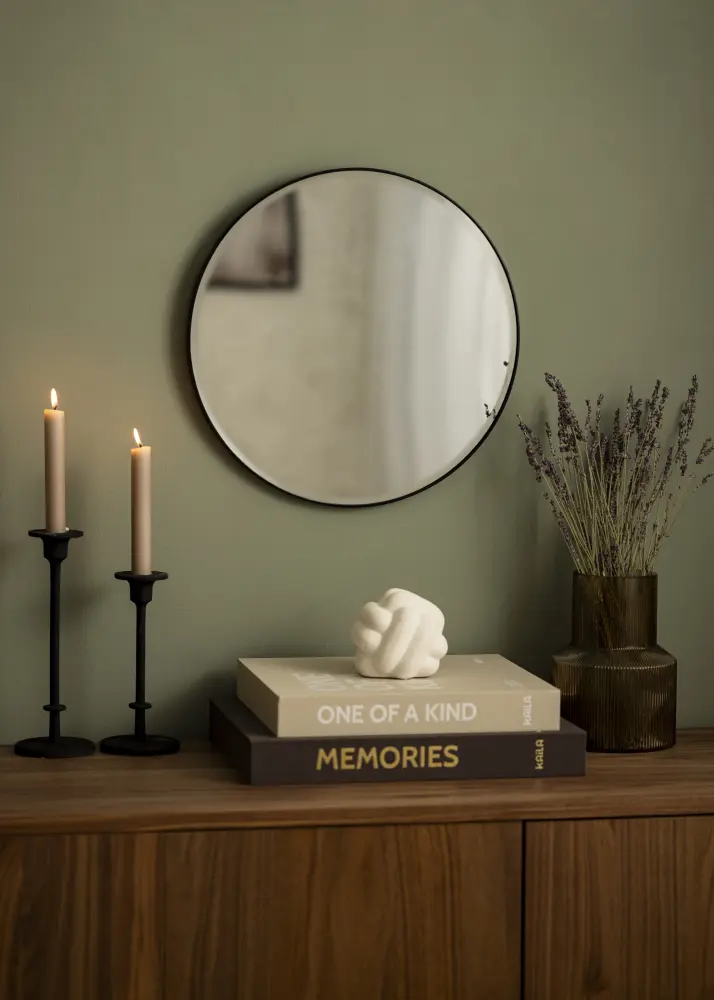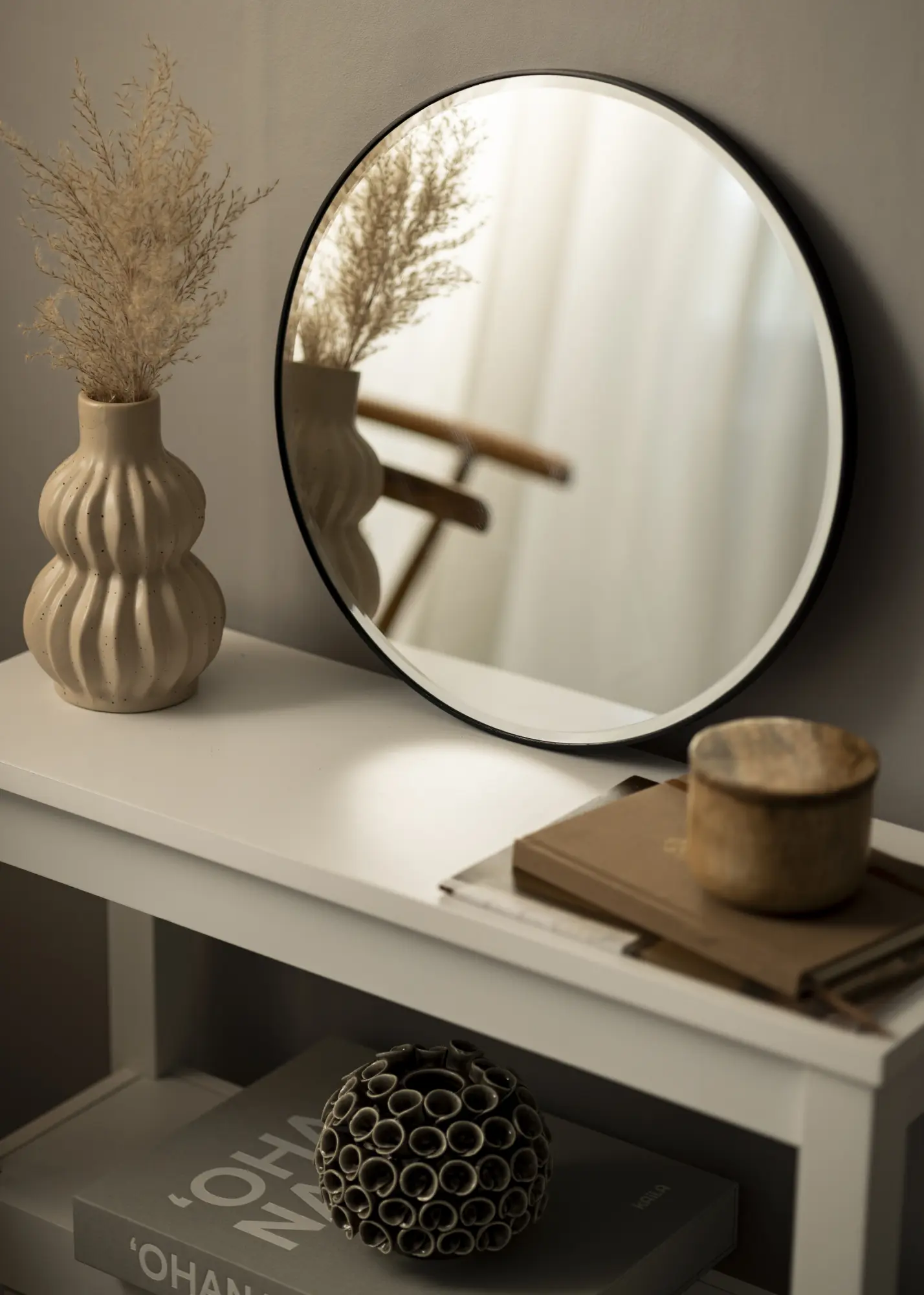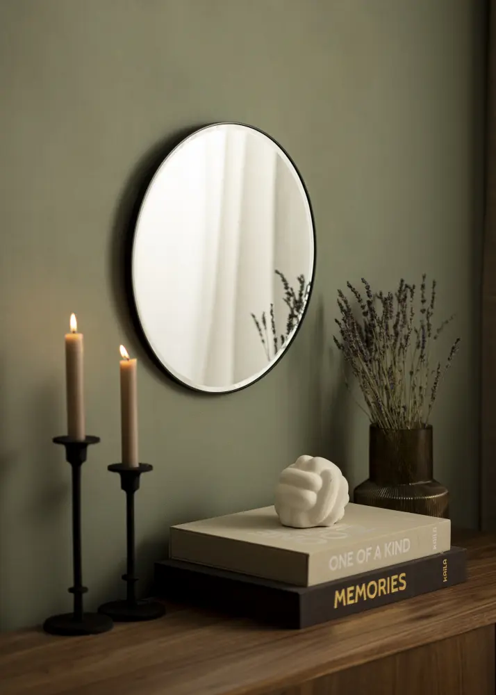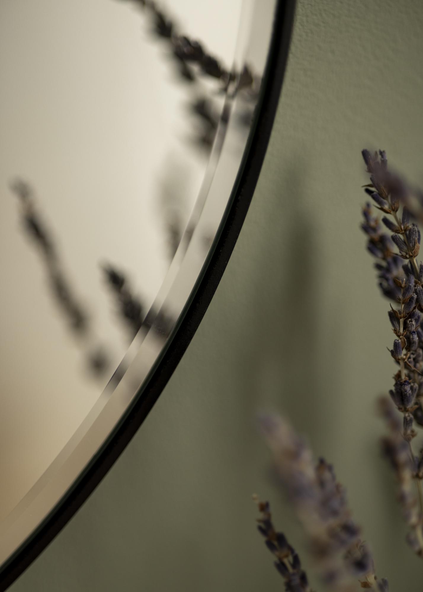 Această oglindă rotundă provine de la Incado din Danemarca și are un design modern cu un sentiment exclusiv. Acest lucru se datorează combinației fericite dintre rama neagră la modă și marginea elegantă șlefuită a sticlei oglinzii. Acest design stilizat face ca această oglindă să se potrivească cu majoritatea locuințelor și stilurilor de interior.