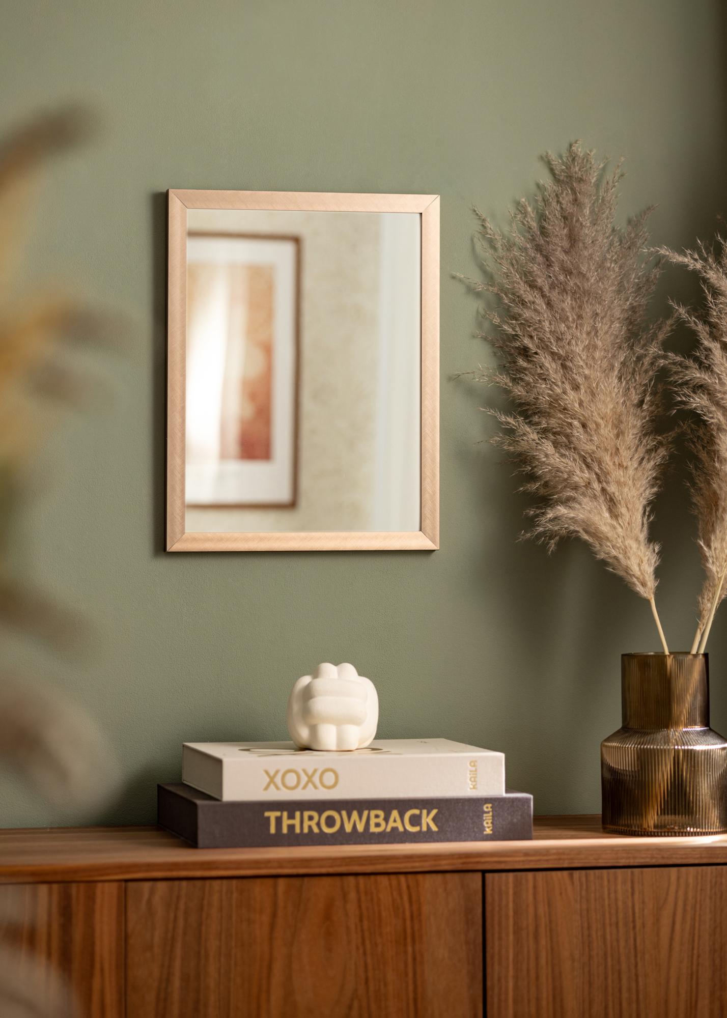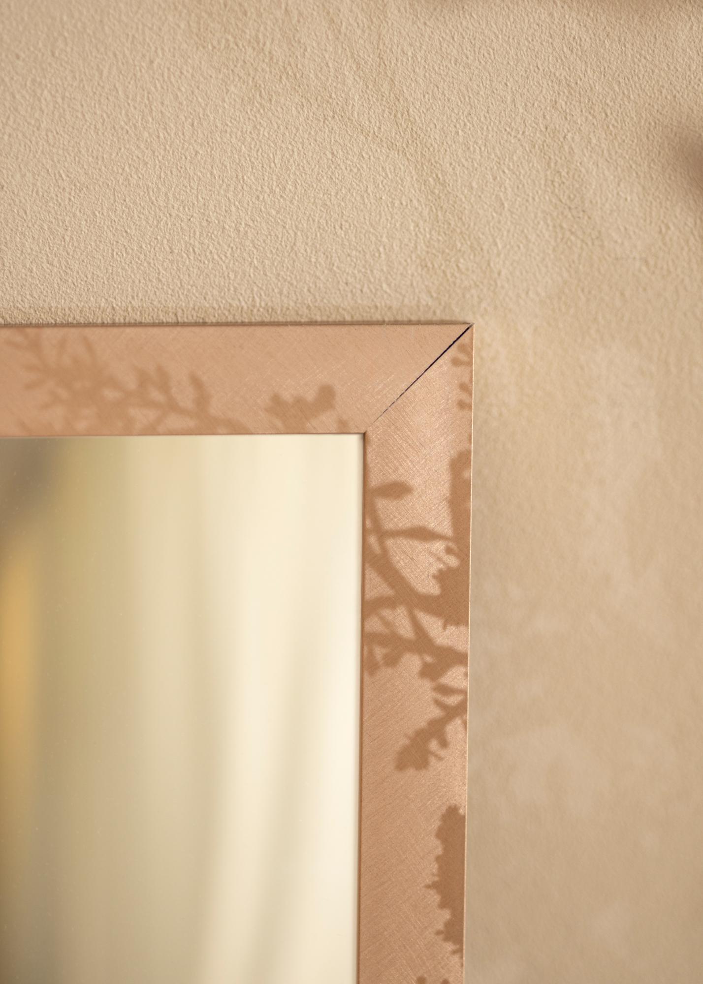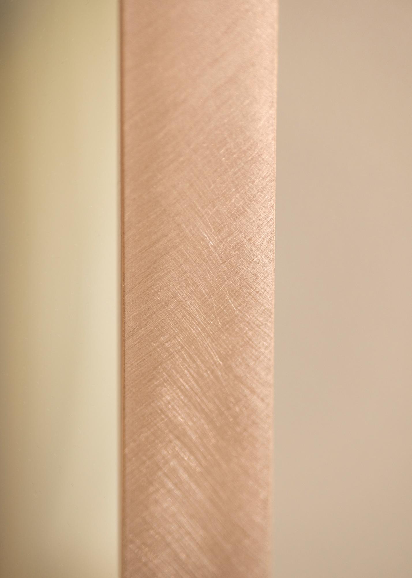 Oglindă minimalistă cu o ramă din aluminiu de culoare bronz, ideală pentru a fi atârnată atât în hol, cât și într-un dressing. Designul elegant al ramei oglinzii se potrivește tuturor tipurilor de interioare, dar este deosebit de atrăgător într-un decor nordic simplu, unde poate aduce o notă caldă într-un mediu rece. Oglinda poate fi folosită pentru a lumina o încăpere sau pentru a o face să pară mai mare, plasând-o astfel încât să reflecte lumina.