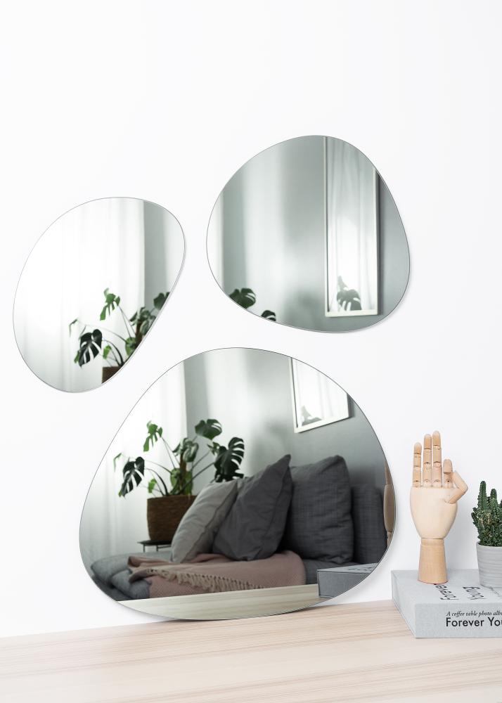 Acest set de oglinzi provine de la Incado din Danemarca, ceea ce înseamnă că are o calitate înaltă și un factor de tendință ridicat al oglinzilor. Faptul că sunt din sticlă oglinzită în nuanța gri cald le face să fie extrem de atrăgătoare, iar designul cu diferitele dimensiuni este interesant.