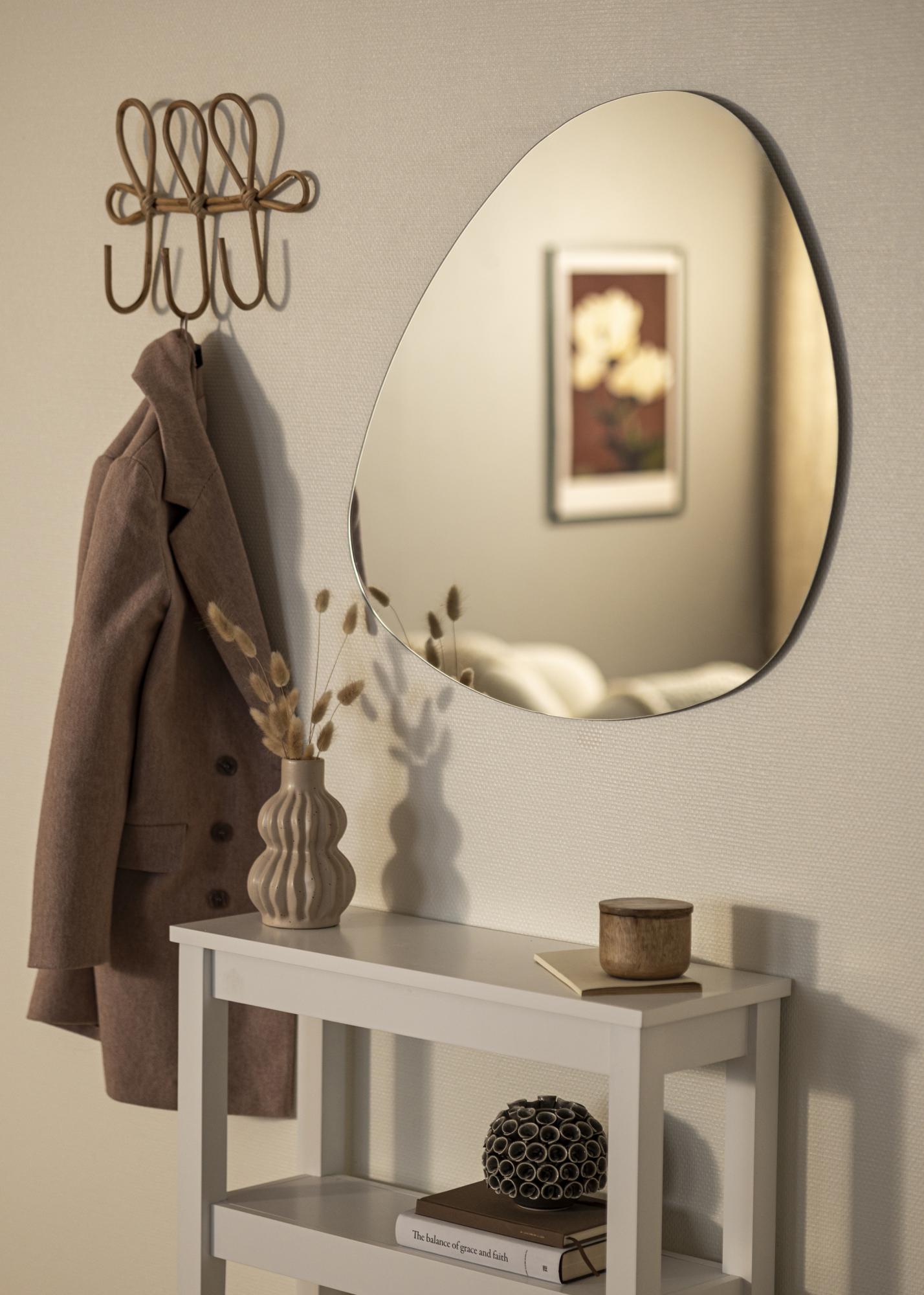Designul oglinzii nu este doar estetic atrăgător, ci și funcțional. Forma asimetrică îți permite să alegi ce parte să fie în sus sau în jos, oferindu-ți libertatea de a personaliza spațiul tău. Indiferent de locul unde o plasezi, această oglindă va deveni un punct de discuție și un element expresiv în casa ta.