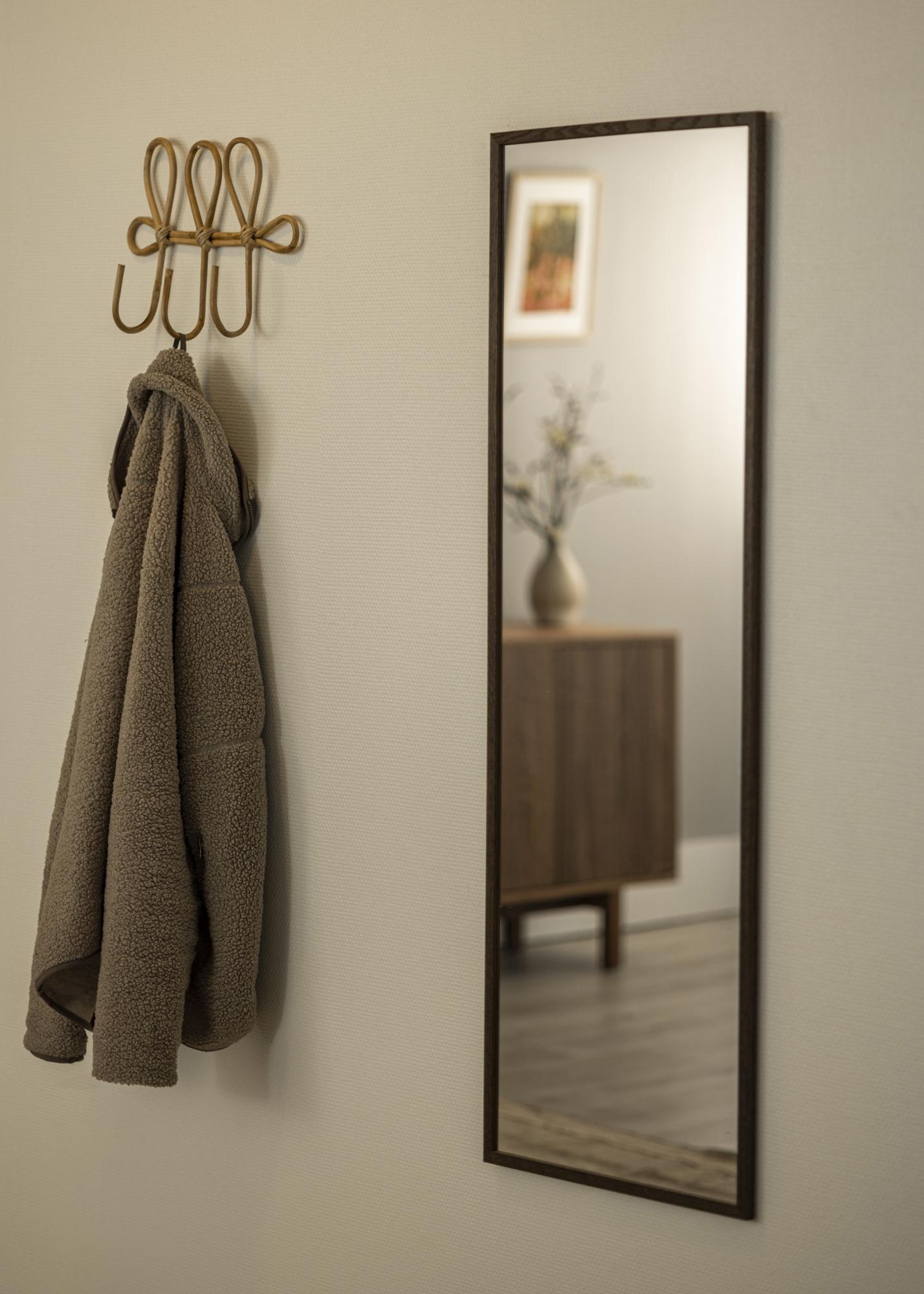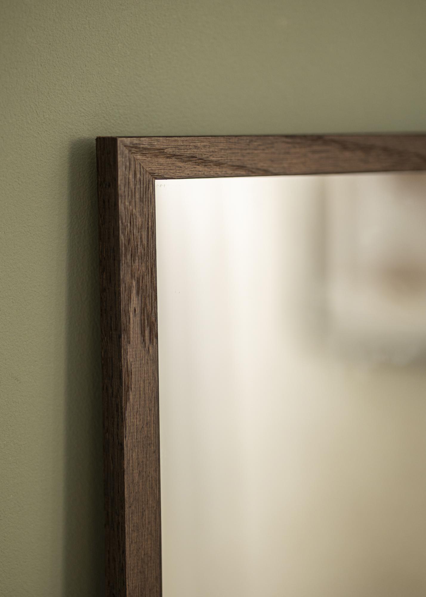Rama oglinzii este fabricată din lemn autentic de stejar și are o nuanță de stejar închis care imediat atrage privirea. Grosimea ramei contribuie la o senzație de robustețe și oferă oglinzii o prezență marcantă pe perete. Această oglindă nu este doar un accesoriu practic, ci și o operă de artă care completează și înfrumusețează decorul interior.