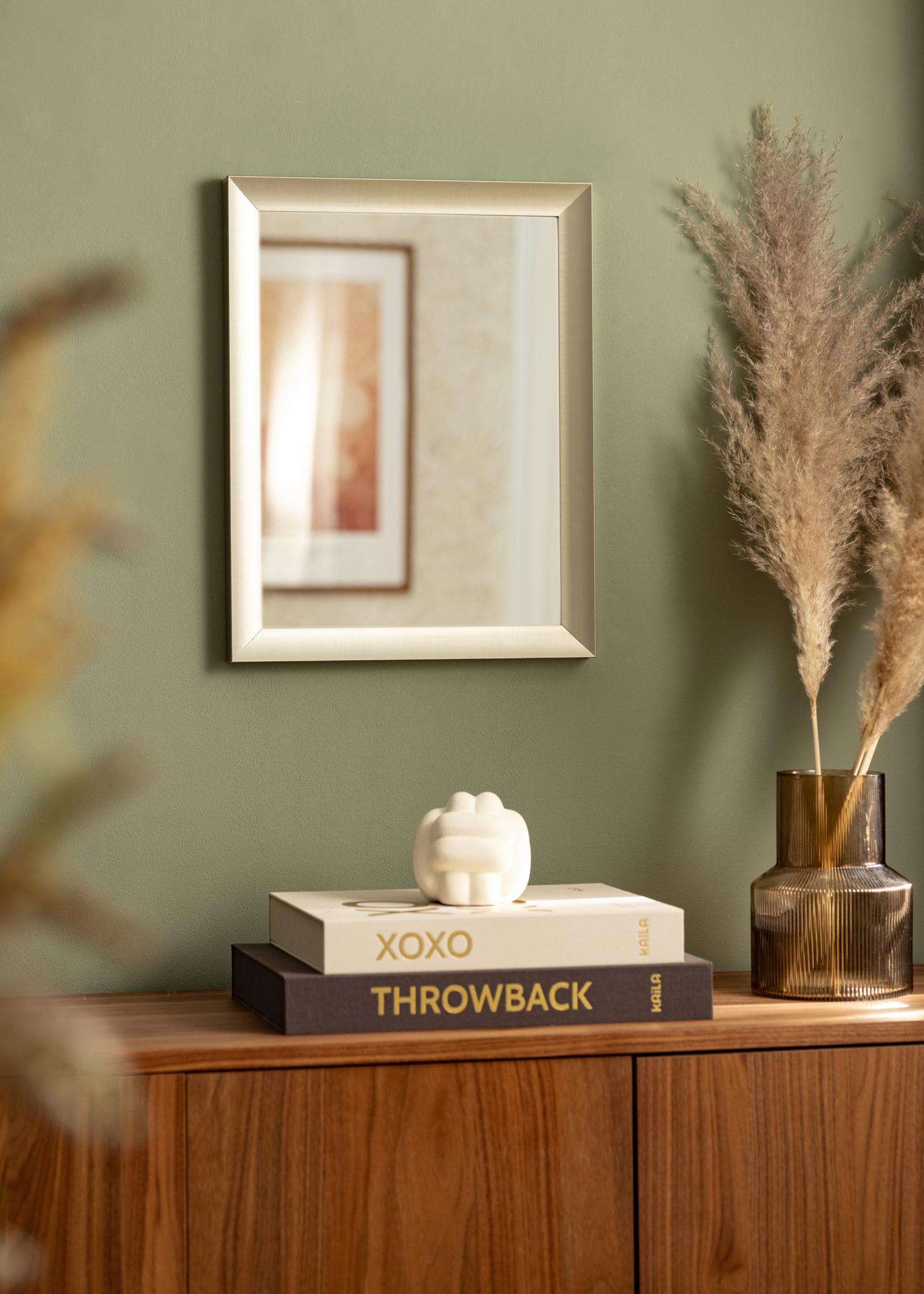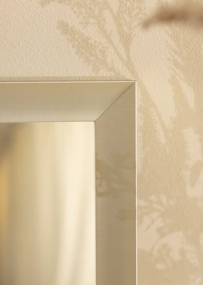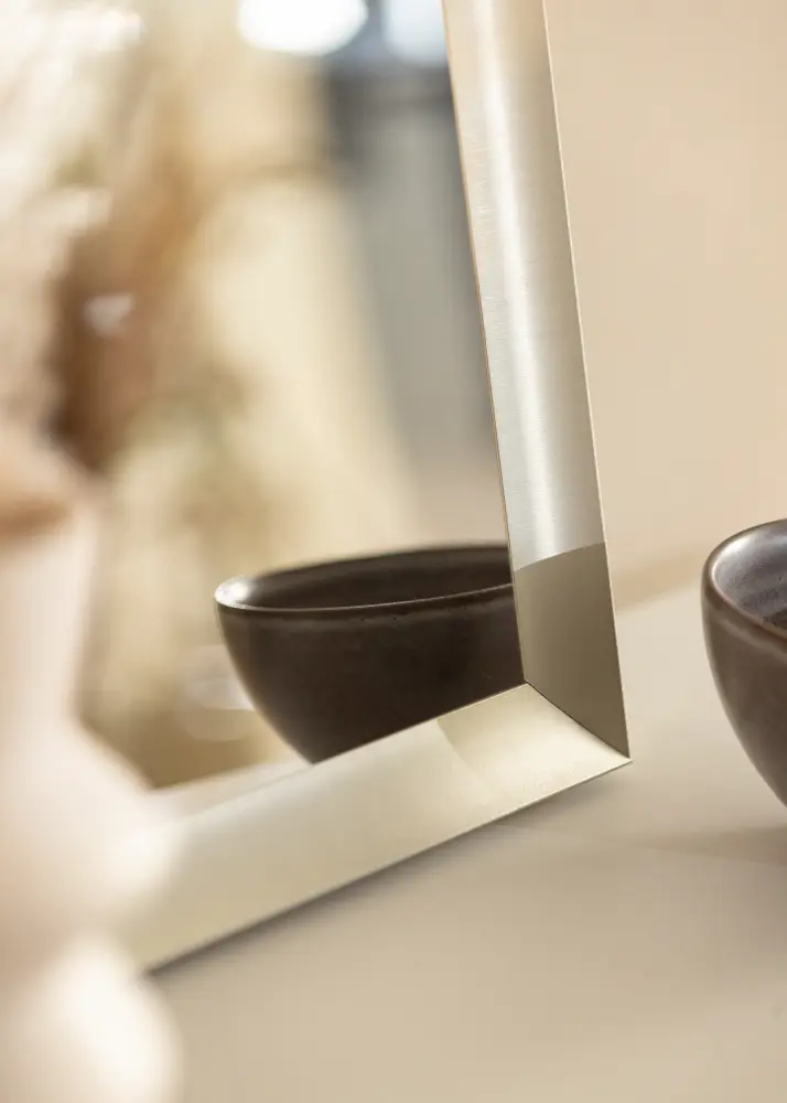 Oglindă elegantă cu o ramă de culoare diamantină cu un profil rotunjit care oferă o impresie fină, realizată de înaltă calitate din aluminiu. Culoarea neutră a oglinzii și forma sa pură fac ca aceasta să se integreze în orice cameră și interior, dar se potrivește cel mai bine alături de culori pastelate. Așezați oglinda împreună cu tablouri grafice și fotografii cu rame negre și combinați cu detalii de interior din sticlă sau negru pentru a crea o unitate în cameră.