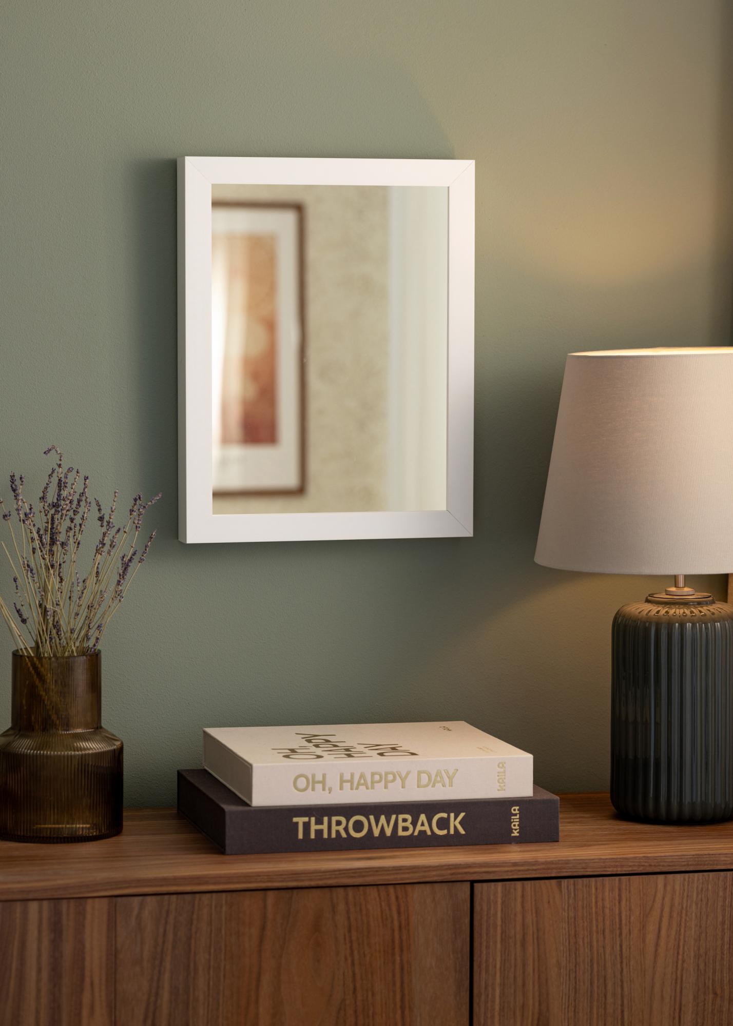 Această oglindă are o culoare albă elegantă care se îmbină cu majoritatea stilurilor de decor interior. Cadrul lat de 30 mm oferă oglinzii un contur stilat și discret, în timp ce dimensiunea de 50 mm în adâncime creează o impresie robustă și solidă. Fabricată din lemn de pin, oglinda oferă atât durabilitate, cât și o senzație naturală care completează designul său modern.