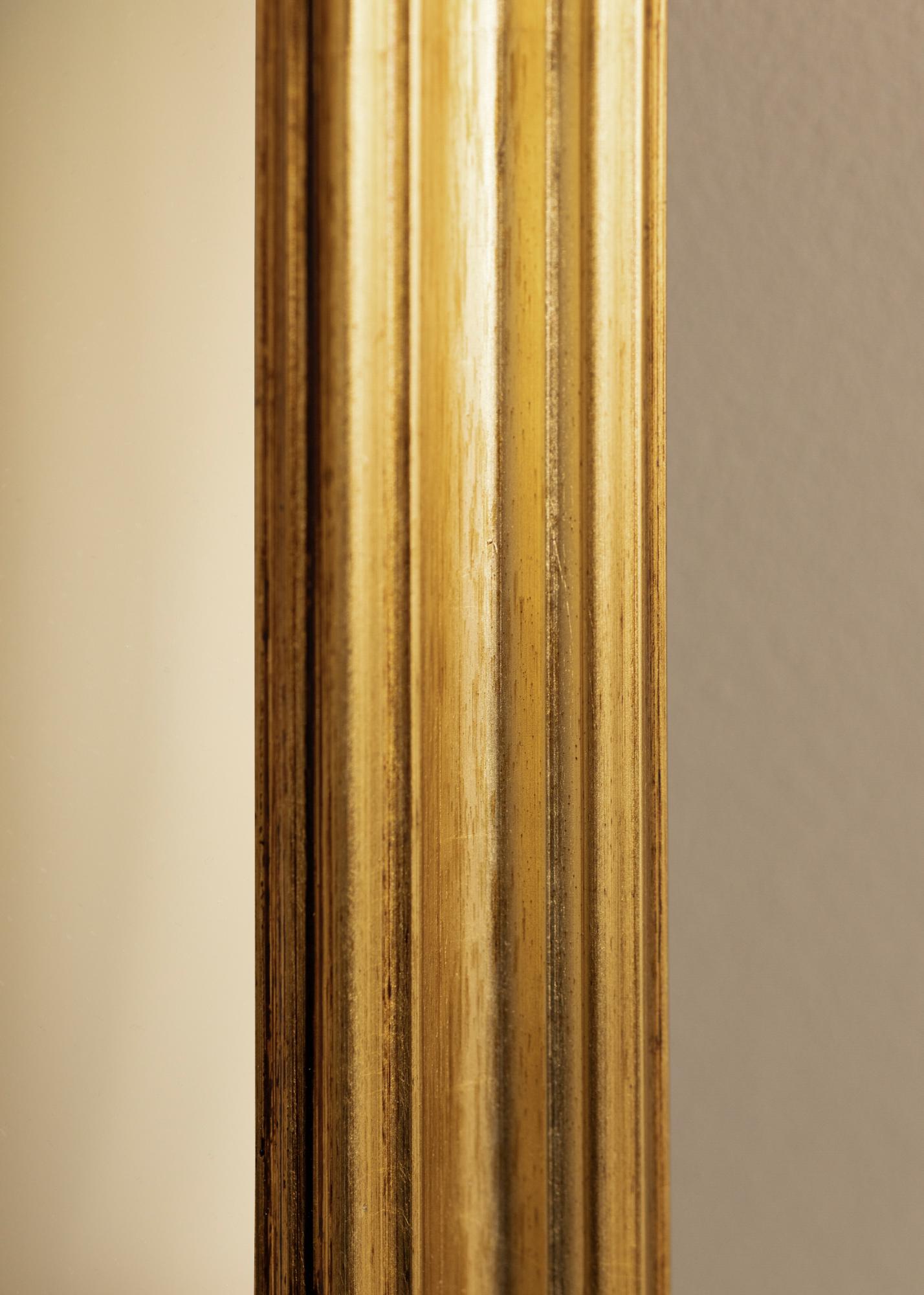 Această oglindă are o frumoasă culoare aurie cu profiluri rotunjite moi care oferă un aspect clasic și sofisticat. Culoarea aurie caldă are nuanțe subtile și o suprafață ușor îmbătrânită, contribuind la un aspect atemporal care se potrivește atât în interioare moderne, cât și tradiționale. Oglinda poate deveni ușor o parte centrală a camerei tale, indiferent dacă o așezi în hol, în sufragerie sau în dormitor.