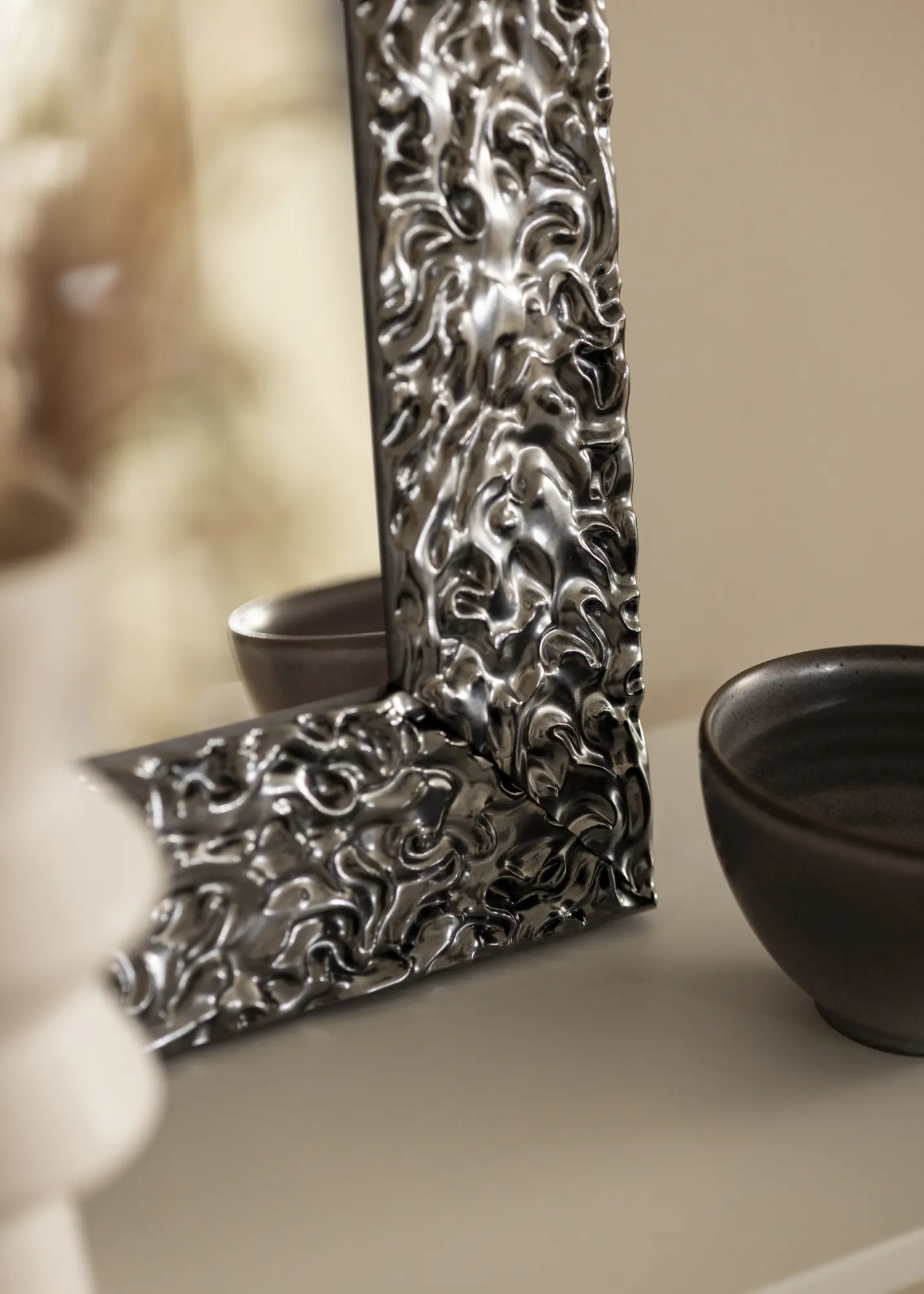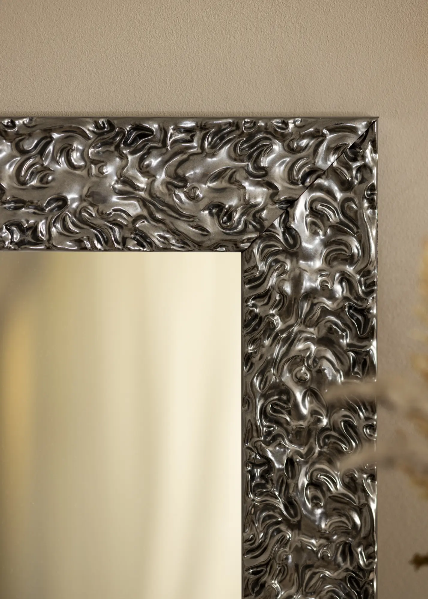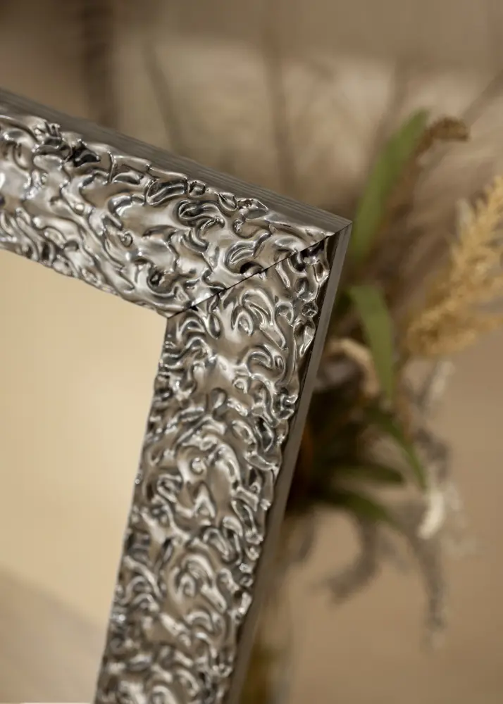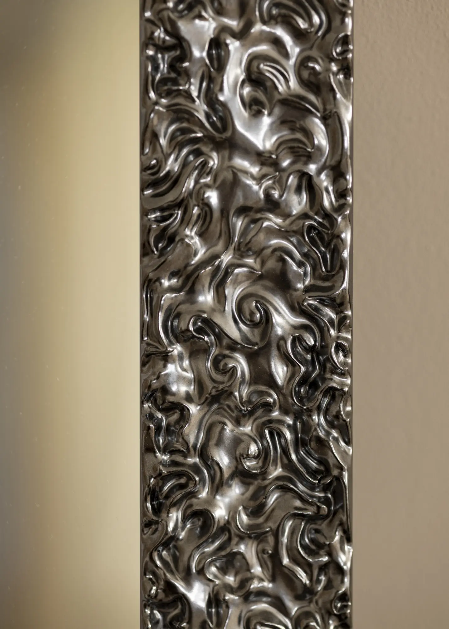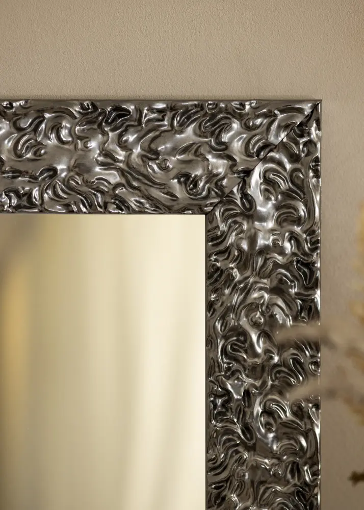 Rama oglinzii are o lățime de 81 mm și un model detaliat care contribuie la suprafața sa vibrantă. Acest lucru face ca oglinda să fie o alegere perfectă pentru cei care doresc să adauge o senzație luxoasă și modernă în decorul lor. Rama este fabricată din pin, oferind o construcție stabilă și durabilă, în timp ce contribuie la aspectul elegant al oglinzii.