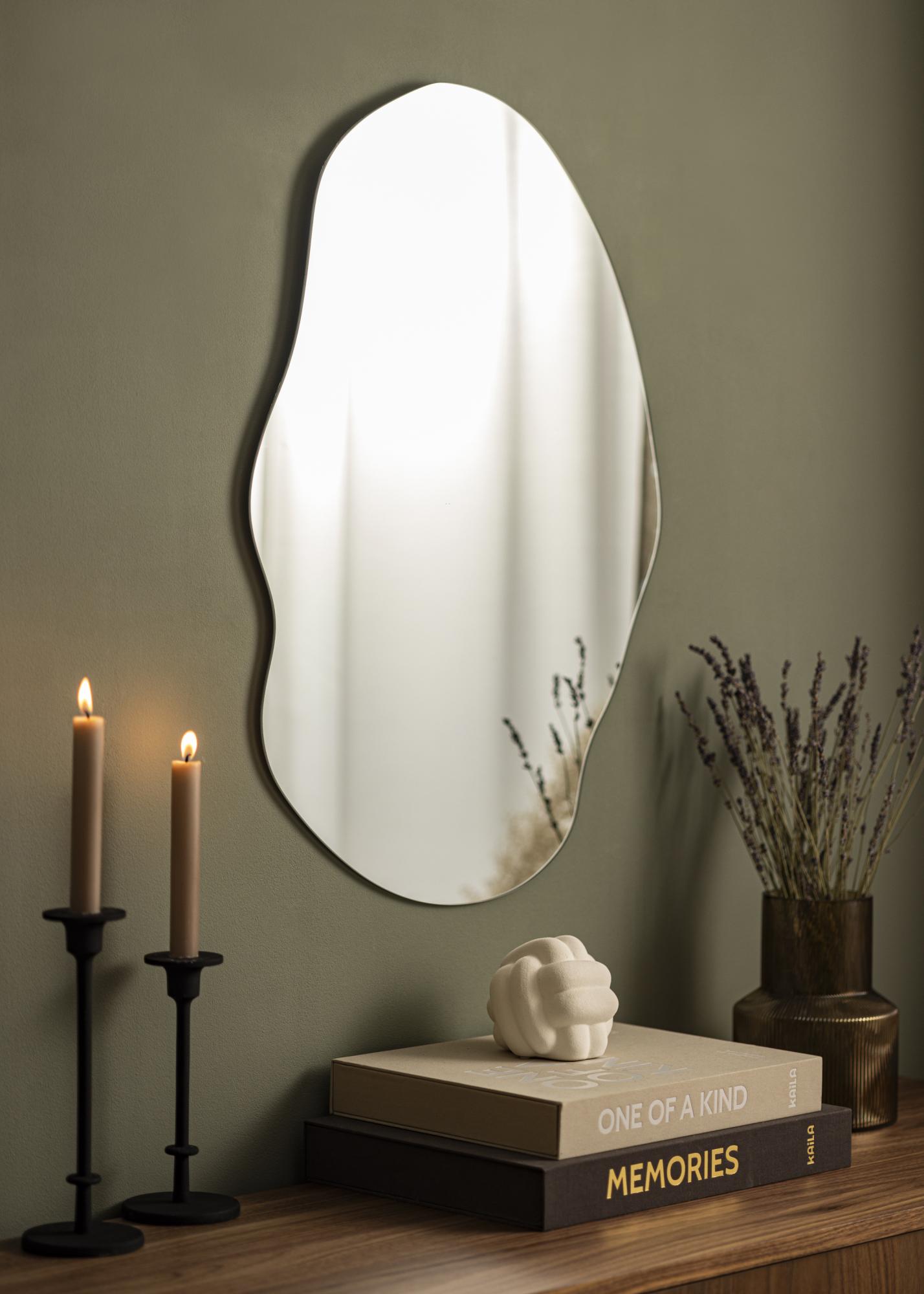 Ai multe forme clasice în decorul tău, cum ar fi mese pătrate sau covoare rotunde? Atunci o oglindă cu o formă diferită este un adaos extraordinar pentru a crea mai multă dinamică în cameră. Wide Cloud este o oglindă de perete de 50x70 cm cu un design inspirat de nori. Forma frumos unduitoare este foarte elegantă, iar sticla subțire a oglinzii întărește și mai mult senzația stilată.