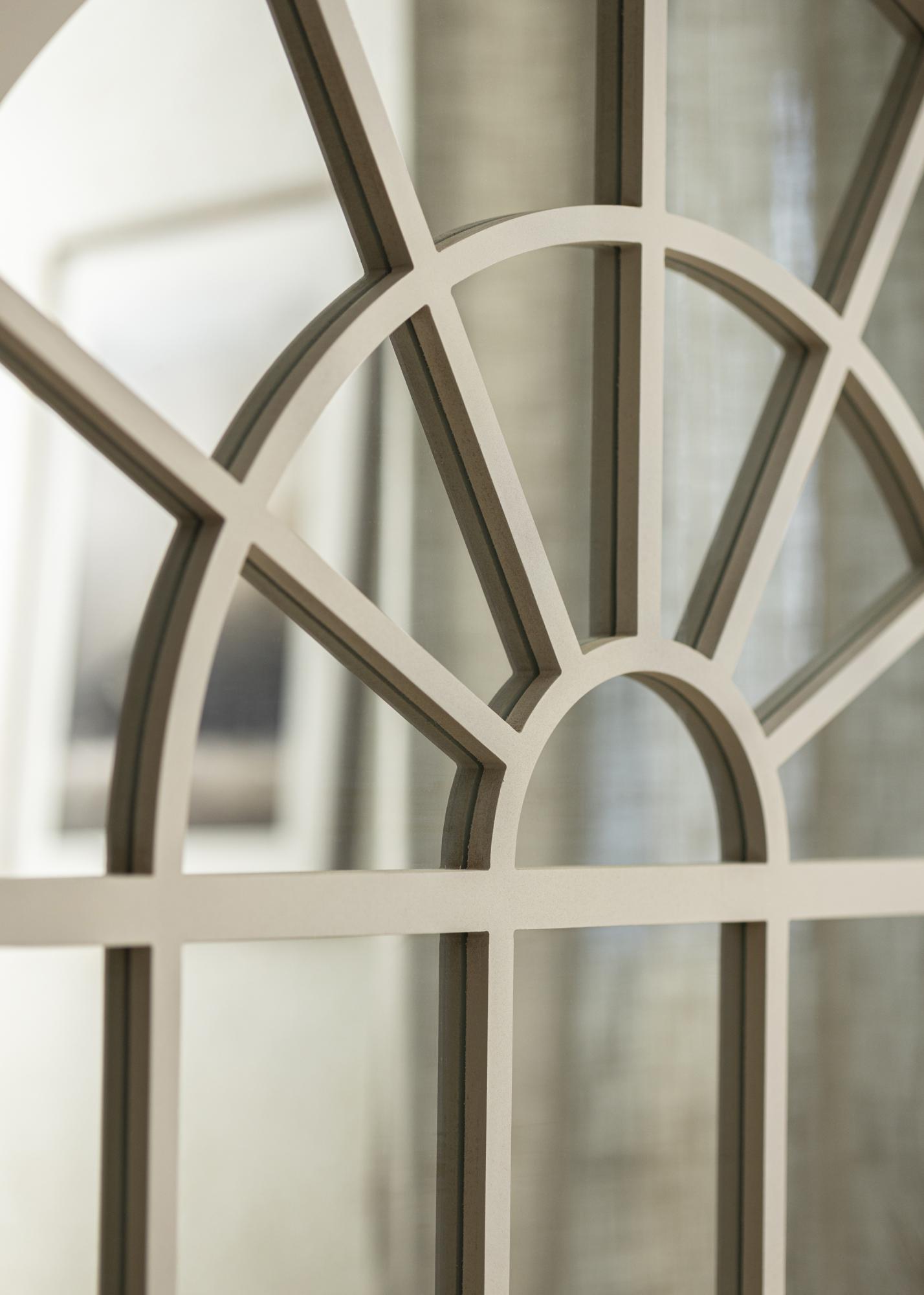 Această oglindă are o formă de arc semicircular care creează linii moi și o senzație clasică, potrivită pentru un stil de design interior tradițional sau inspirat de vintage. Forma sa unică o transformă într-o operă de artă în sine și funcționează la fel de bine ca obiect practic, cât și ca accent decorativ în casa dumneavoastră.