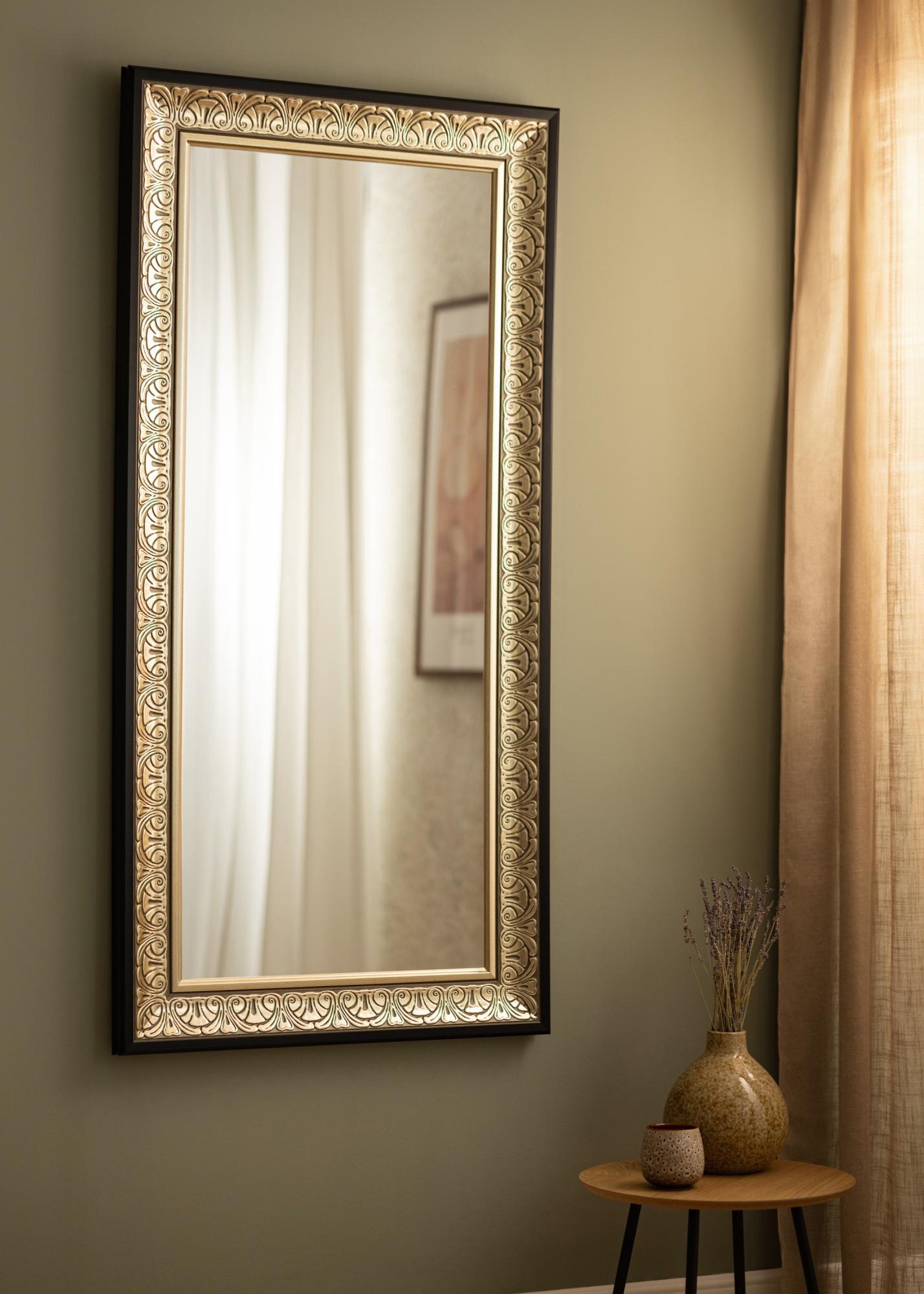Oglindă ornamentată de culoare argintie, care se potrivește la fel de bine într-un dressing, cât și în hol sau în baie. Aspectul ramei din jurul oglinzii, cu modelul său atemporal, face ca oglinda să se potrivească în toate tipurile de stiluri de decor interior, de la dormitoare romantice în nuanțe pastelate și feminine, până la medii mai elegante și în general minimaliste, unde oglinda creează un contrast. De asemenea, se prezintă bine suspendată deasupra unui bufet sau unei comode pentru a oferi o senzație de mai mult spațiu în cameră.