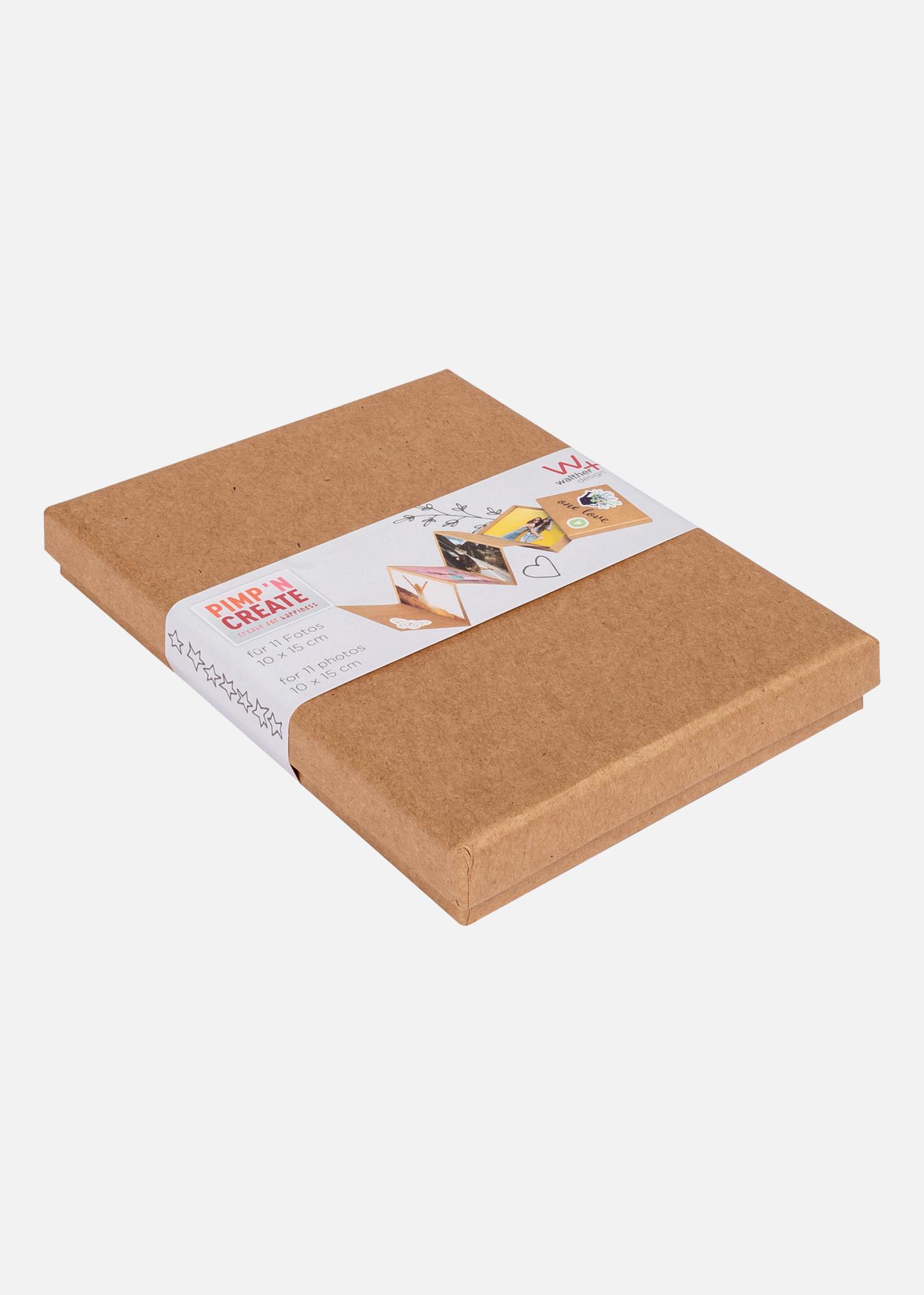 PAC Leporello-Box Maro este un album elegant în formă de acordeon conceput pentru a găzdui 11 fotografii de dimensiunea 10x15 cm. Coperta este realizată din hârtie maro de artizanat cu un interior maro asortat, oferind o senzație clasică și atemporală. Acest album este perfect pentru a colecta și expune amintirile tale într-un mod elegant.