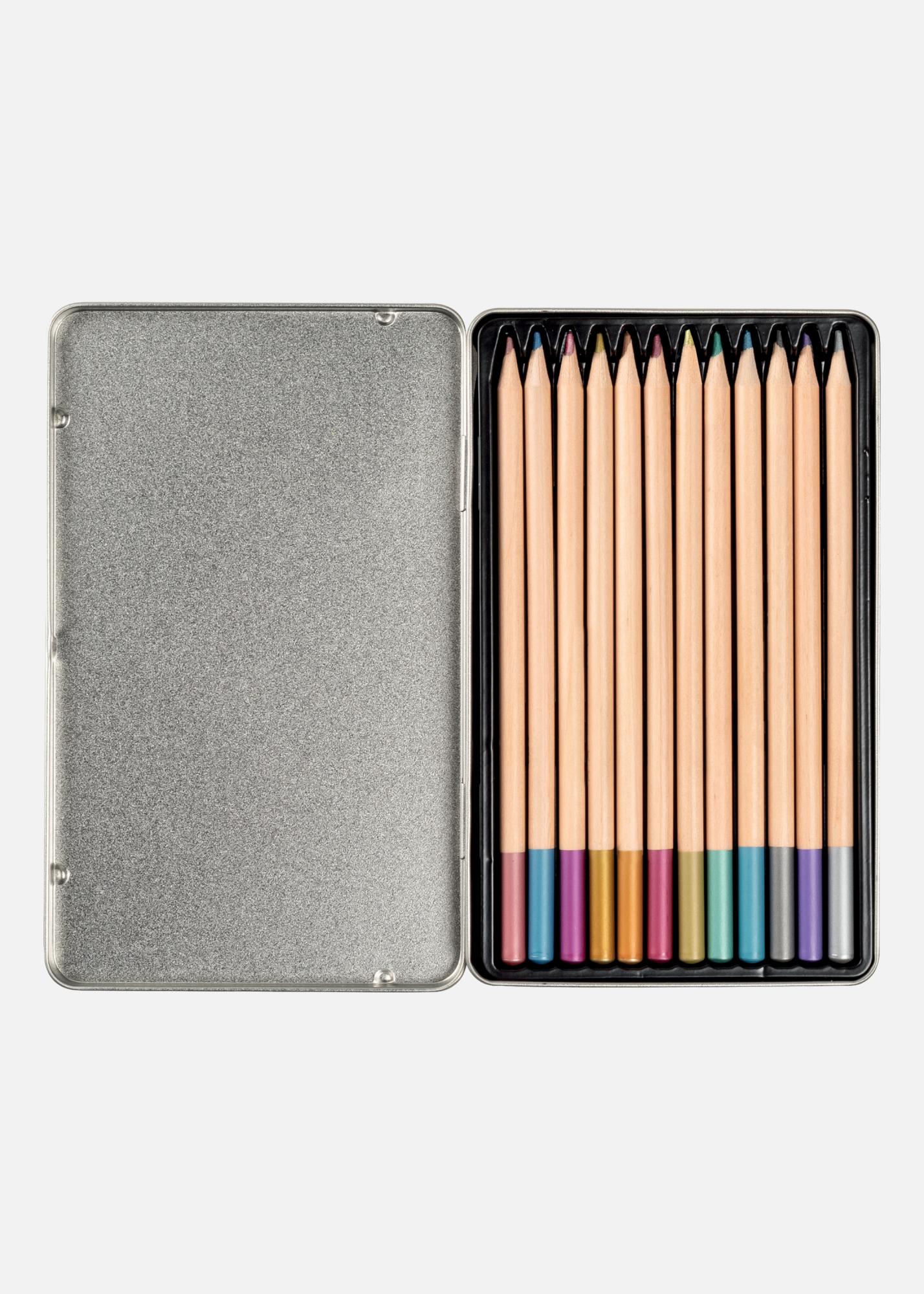 Setul de creioane PAC Metallic conține 12 creioane metalice care oferă un efect elegant și sclipitor pe hârtie atât deschisă, cât și închisă la culoare. Perfect pentru scrapbooking, albume foto și proiecte creative. Setul include culorile auriu, argintiu, cupru, roz, roșu, mov, albastru, albastru deschis, verde, verde deschis, maro și negru.