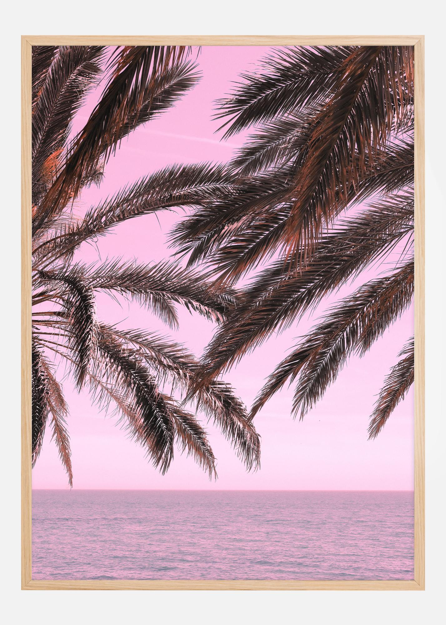 Capturează esența unui apus de soare pe plajă cu acest poster captivant care înfățișează frunze luxuriante de palmier pe un cer roz delicat. Printul invită la visare despre climat tropical și zile relaxante lângă mare. Frunzele întunecate de palmier formează o siluetă elegantă care contrastează cu paleta de culori liniștitoare a cerului și mării, evocând un sentiment de liniște și bunăstare.