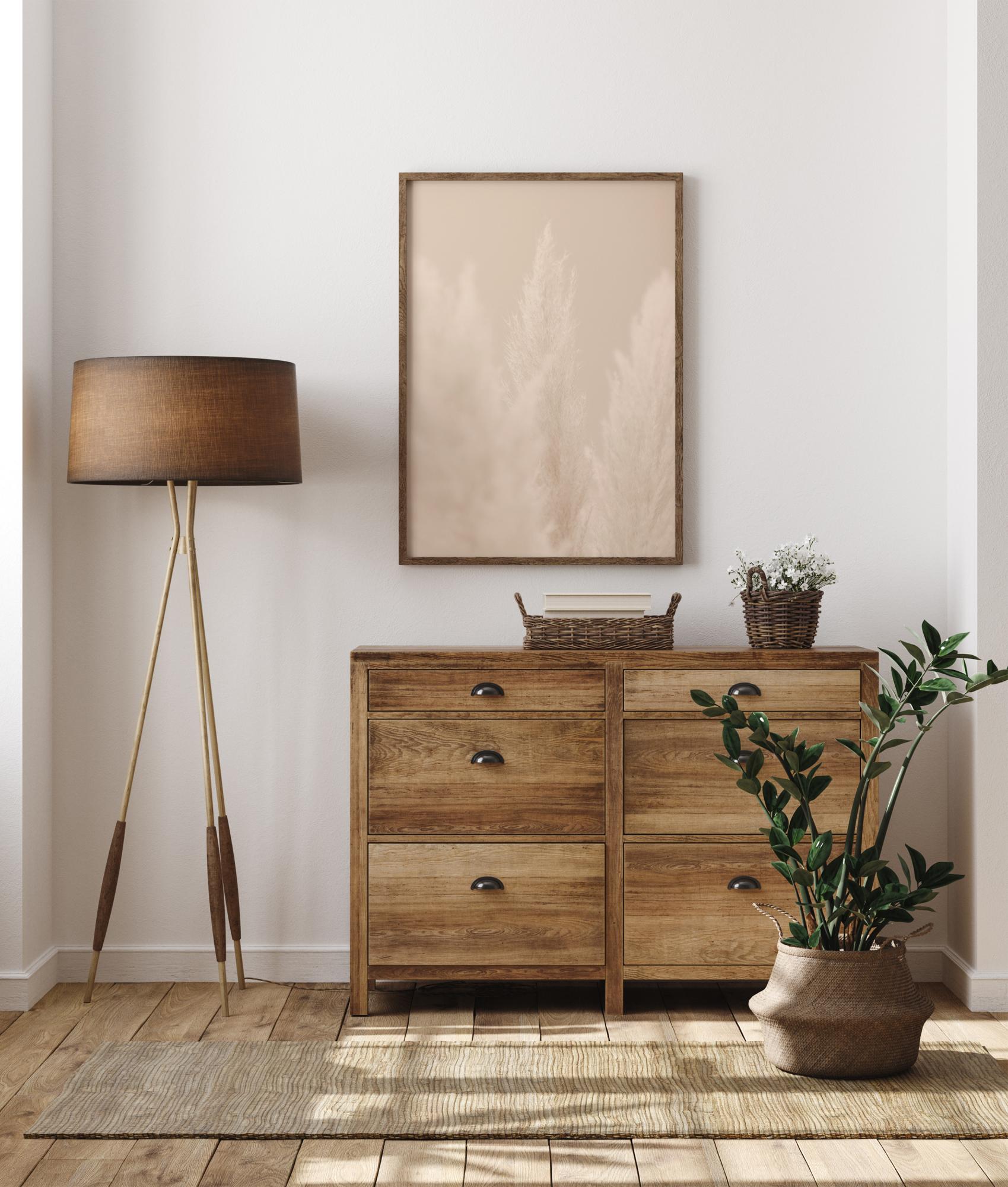 Un poster angelic cu prim-planuri ale ierbii pampas. Lasă-te purtat de vis în fotografia pufoasă asemănătoare unui nor din acest poster simplu, dar elegant. Combină cu alte culori pastelate pentru a obține o senzație cu adevărat eterică în casă.