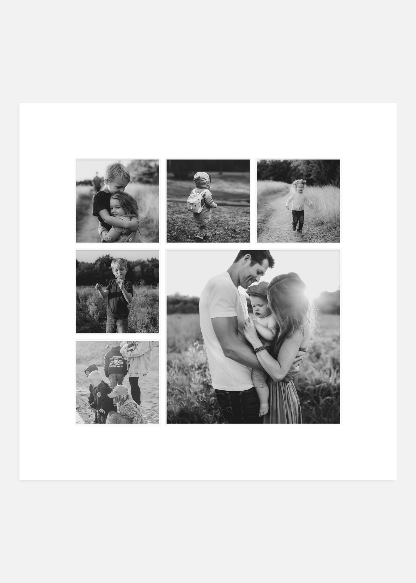 Paspartu Alb Margine albă Colaj 6 Fotografii 50x50 cm