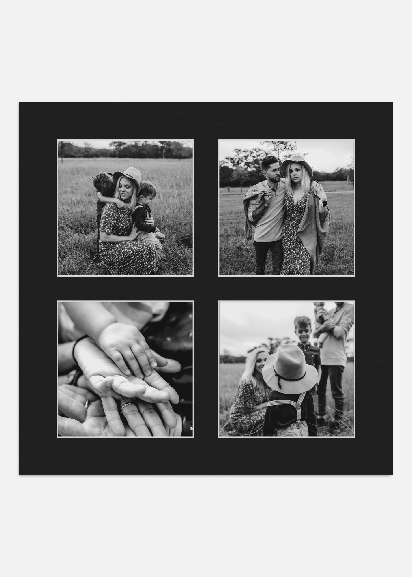 Negru fără acid passepartout pentru colaj cu margini tăiate oblic alb de cea mai înaltă calitate. În passepartout există loc pentru 4 imagini. Perfect când dorești să creezi propriul tău colaj foto personal.
