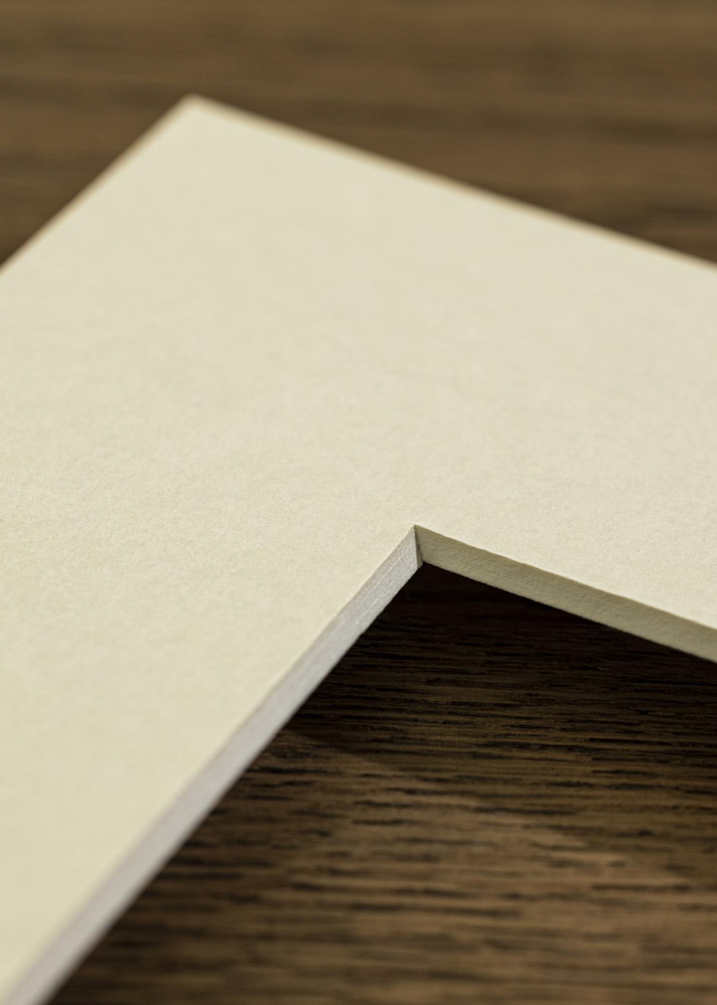 O passepartout offwhite este alb cu o tentă de crem. Deoarece nu este la fel de puternic alb ca un passepartout alb obișnuit, oferă o impresie mai moale.