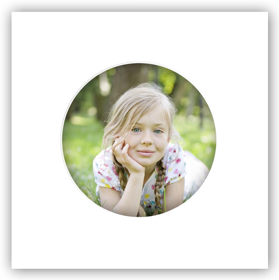 Passepartout pătrat alb fără acid, cu o deschidere rotundă pentru imagine. Se potrivește bine, de exemplu, pentru portrete. Passepartout-ul este de cea mai înaltă calitate și fără acid, ceea ce este blând pentru imaginile tale.
