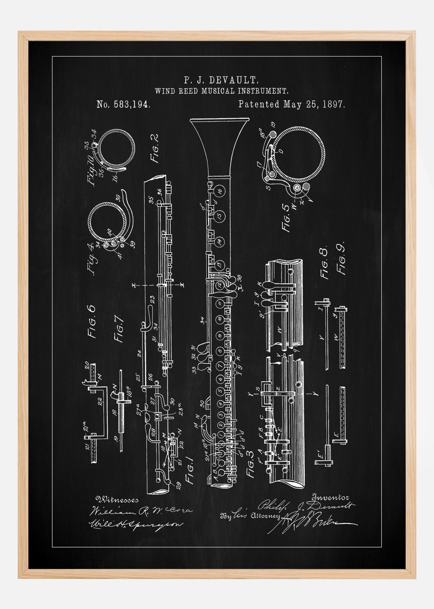 Prezentați acest afiș de brevet impunător, un omagiu adus inovației și designului muzical. Acest poster îl prezintă pe P.J. DeVaults clarinet, un brevet emis pe 25 mai 1897 sub numărul 583,194. Această reproducere exactă a desenului original al brevetului ilustrează mecanica complexă și frumusețea instrumentului, un accent perfect pentru orice cameră în care muzica și istoria sunt apreciate.