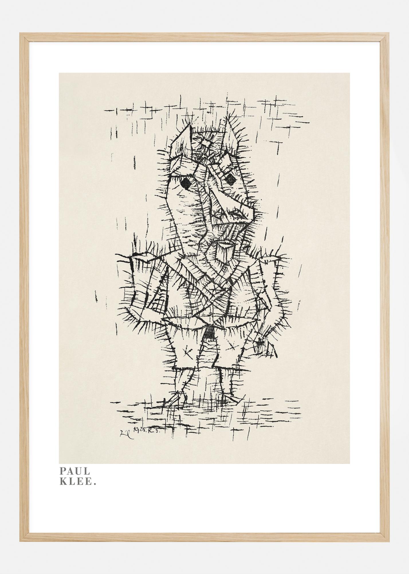 Această posteră prezintă o reprezentare grafică fascinantă a lucrării "Ass Esel" de Paul Klee din 1925. Ea prezintă o figură abstractă compusă din linii dinamice și forme care creează un efect vizual puternic. Jocul artistului cu textura și liniile prinde viață în această operă alb-negru, unde contrastul dintre trăsătura îndrăzneață și fundalul moale creează o compoziție captivantă. Acest print este o reflexie a capacității lui Klee de a transforma contururile simple în imagini expresive și încărcate emoțional.