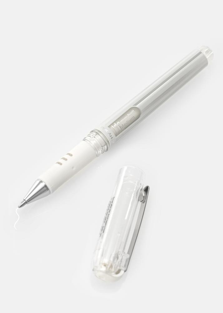 Pix de la Pentel cu culoare albă. Pixul are o grosime a vârfului de 1 mm.