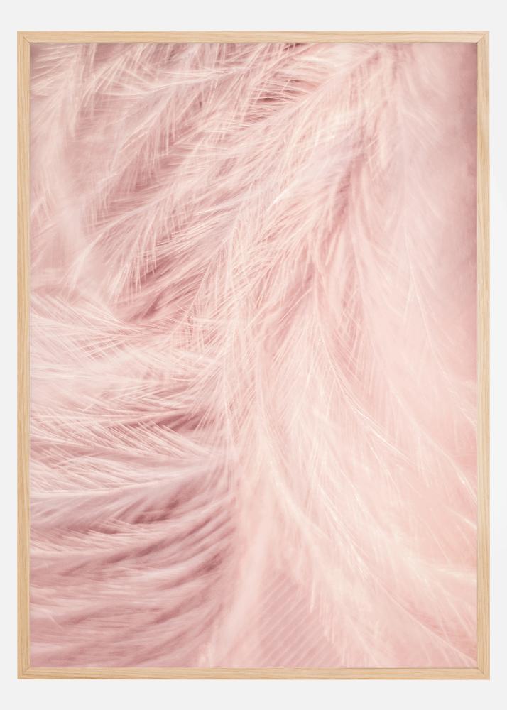 Un poster minunat cu prim-plan de pene roz moi. Datorită luminii puternice care strălucește pe pene, nu este clar dacă penele sunt de fapt roz sau albe. Este o lumină roz care se reflectă pe pene? Agață acest poster în casa ta pentru o senzație caldă și moale.