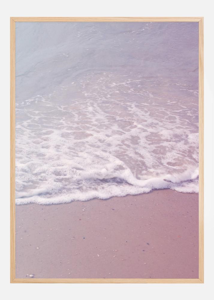 Un portret fantastic al plajei marine. Când valurile se sparg de țărm, se formează o spumă albă pe nisip. Nisipul roz frumos și marea creează o atmosferă de vară. Adu vara în casa ta cu acest poster revigorant.
