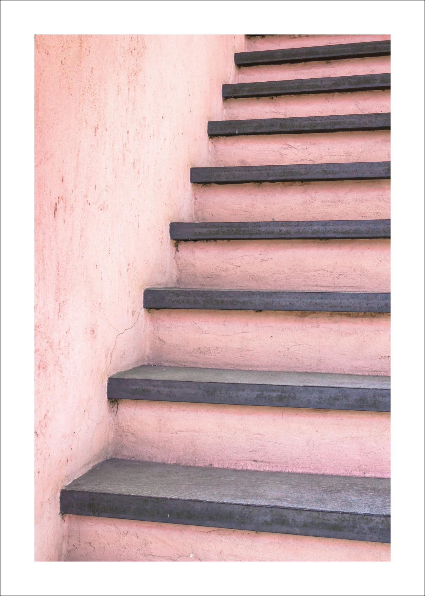 O fotografie a unei scări cu contraste minunate de pastel roz și beton gri. Un poster simplu și elegant, perfect de combinat cu alte favorite pe un perete mai mare de tablouri. Se potrivește în majoritatea caselor și stilurilor de decor.