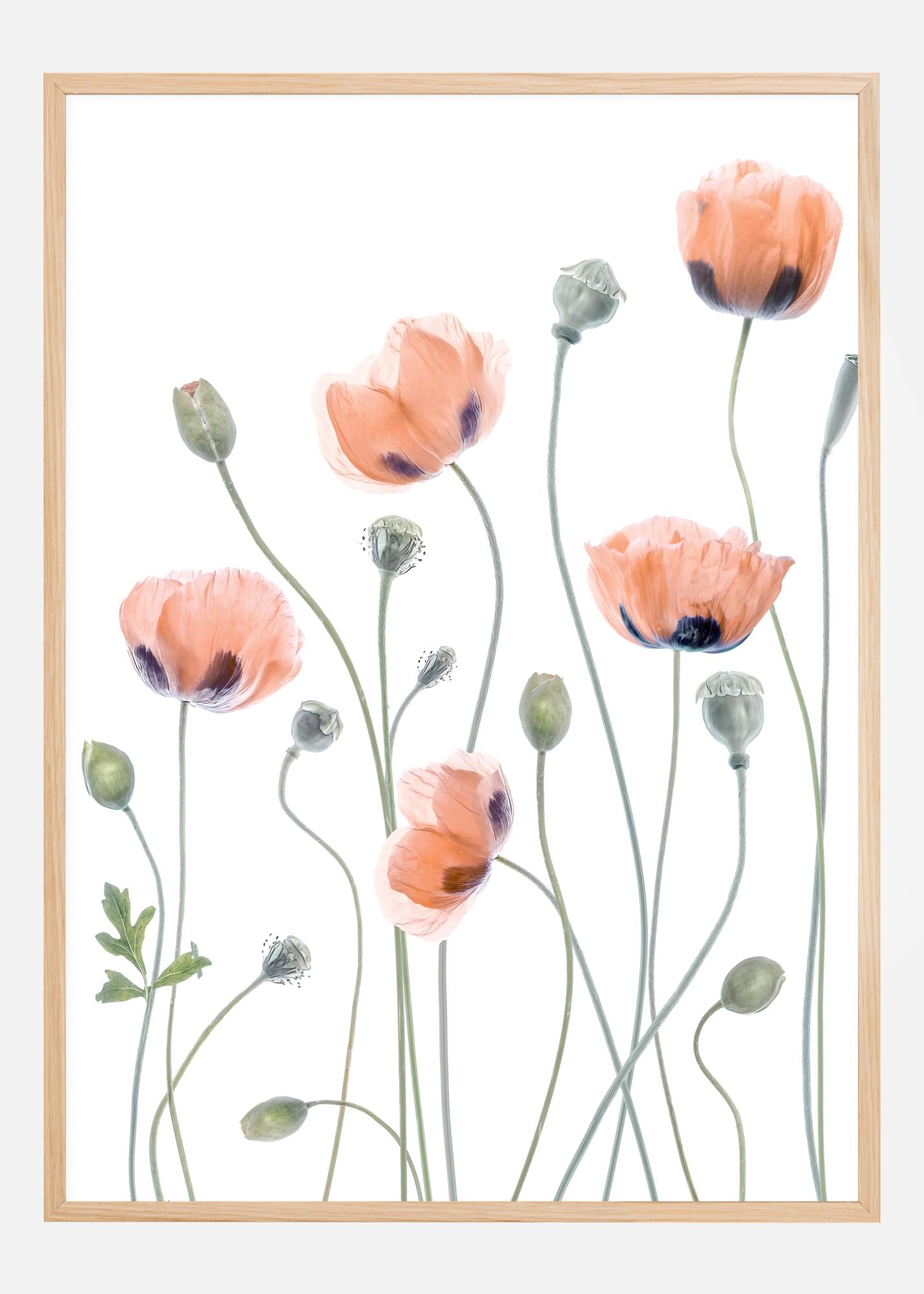 Un imprimeu fermecător de maci care se împletesc cu iarbă uscată. Pe un fundal alb, florile de maci de culoarea piersicii se îmbină perfect cu iarba verde deschis. Fiecare mac are o înălțime diferită. Un poster frumos și liniștitor de agățat într-o bucătărie rustică.