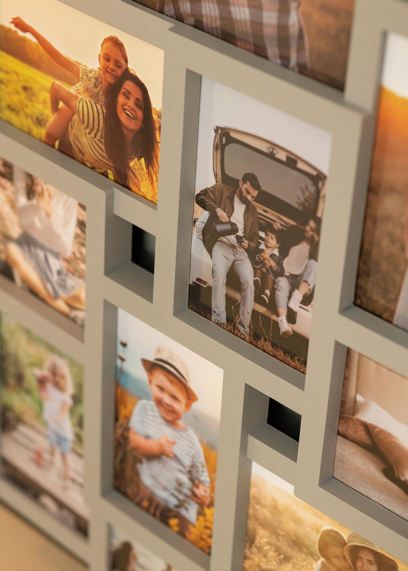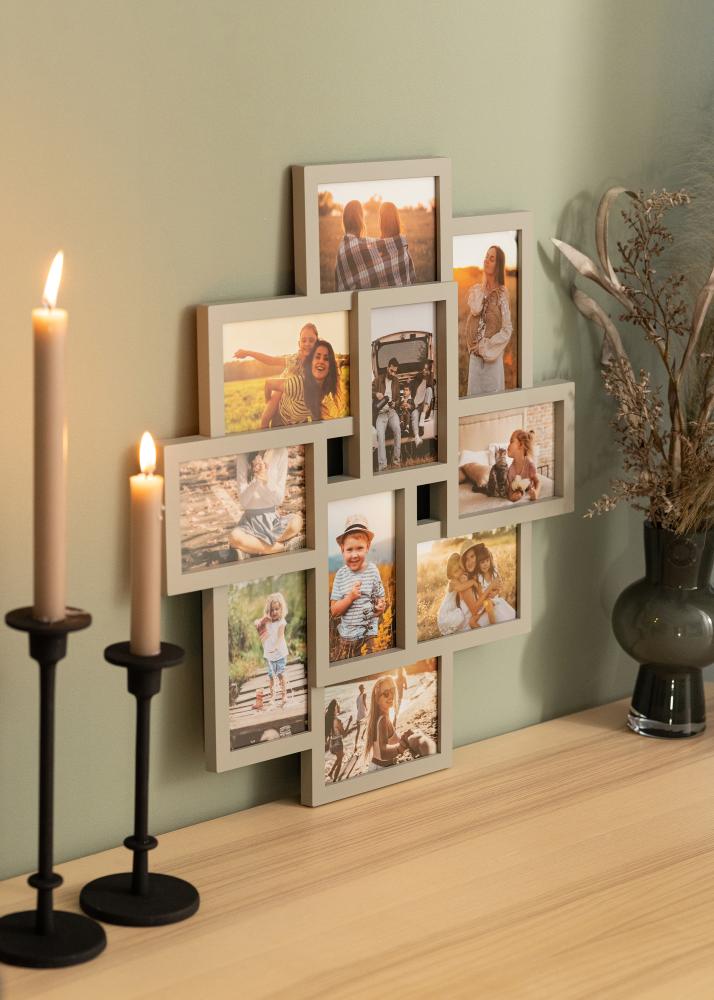Aceasta este o ramă colaj cu spațiu pentru 10 fotografii de 10x15 cm. Rama combină fotografiile în format portret și peisaj, rezultând astfel o expresie foarte dinamică. Culoarea gri sofisticată va evidenția nuanțele din fotografiile tale și va permite motivelor să fie în prim-plan. Poți monta motivele în ramă prin desprinderea spatelui, care este ținut pe loc de mici cleme rotative. Toate fotografiile sunt ținute pe loc de un singur spate, astfel încât să poți plasa cu ușurință toate imaginile în ramă simultan.