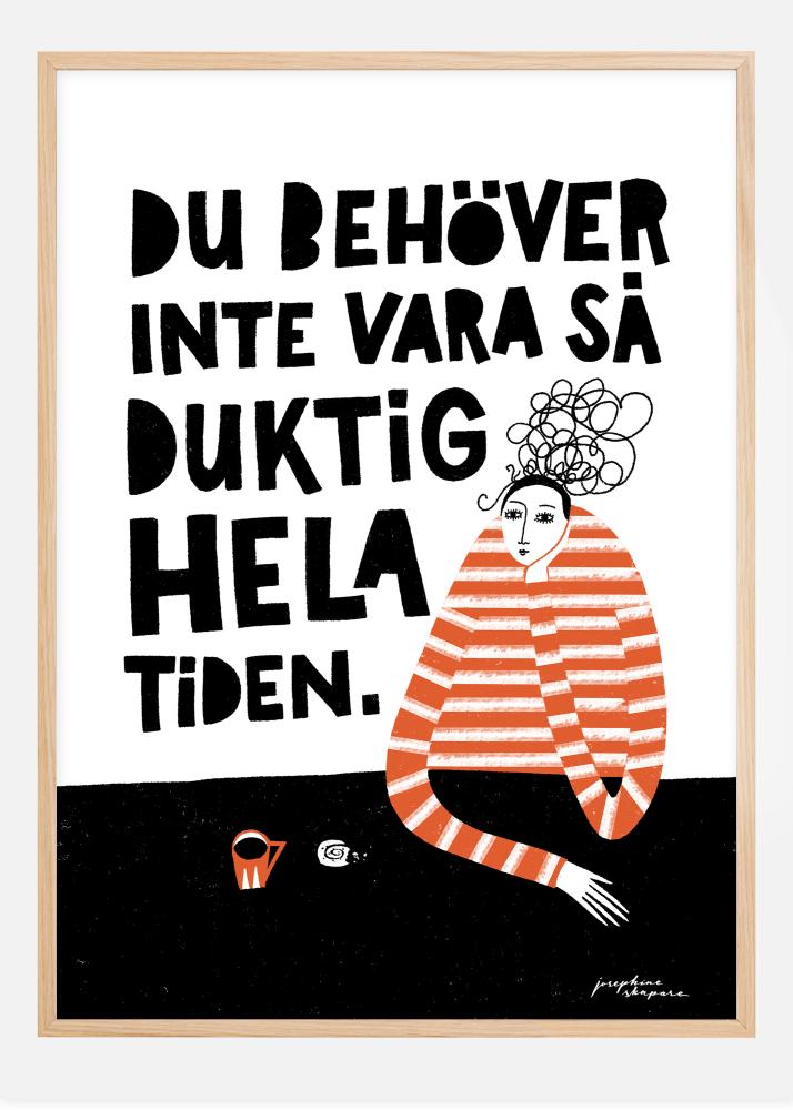 Un poster amuzant și motivant cu o femeie care stă la o masă cu cafeaua ei. ”Nu trebuie să fii atât de bună tot timpul” este un gând excelent de urmat. Fii inspirată în fiecare dimineață la cafeaua ta și începe-ți ziua pozitiv.