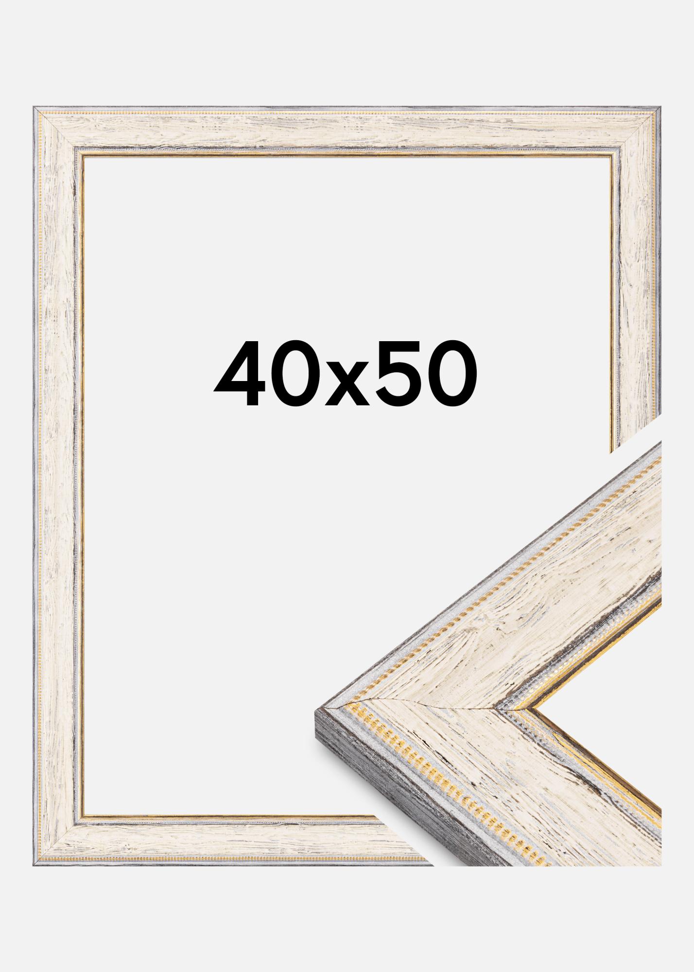 Această ramă foto elegantă este o combinație perfectă de inspirație vintage și funcționalitate modernă. Cu o dimensiune de 40x50 cm, este ideală pentru a evidenția fotografiile sau lucrările tale de artă preferate. Rama este fabricată din lemn și are un finisaj frumos, rustic, alb și gri, care îi conferă un aspect fermecător de îmbătrânit. Detaliile subtile aurii de-a lungul marginii interioare adaugă o notă clasică potrivită atât în interioarele rustice, cât și în cele shabby chic.