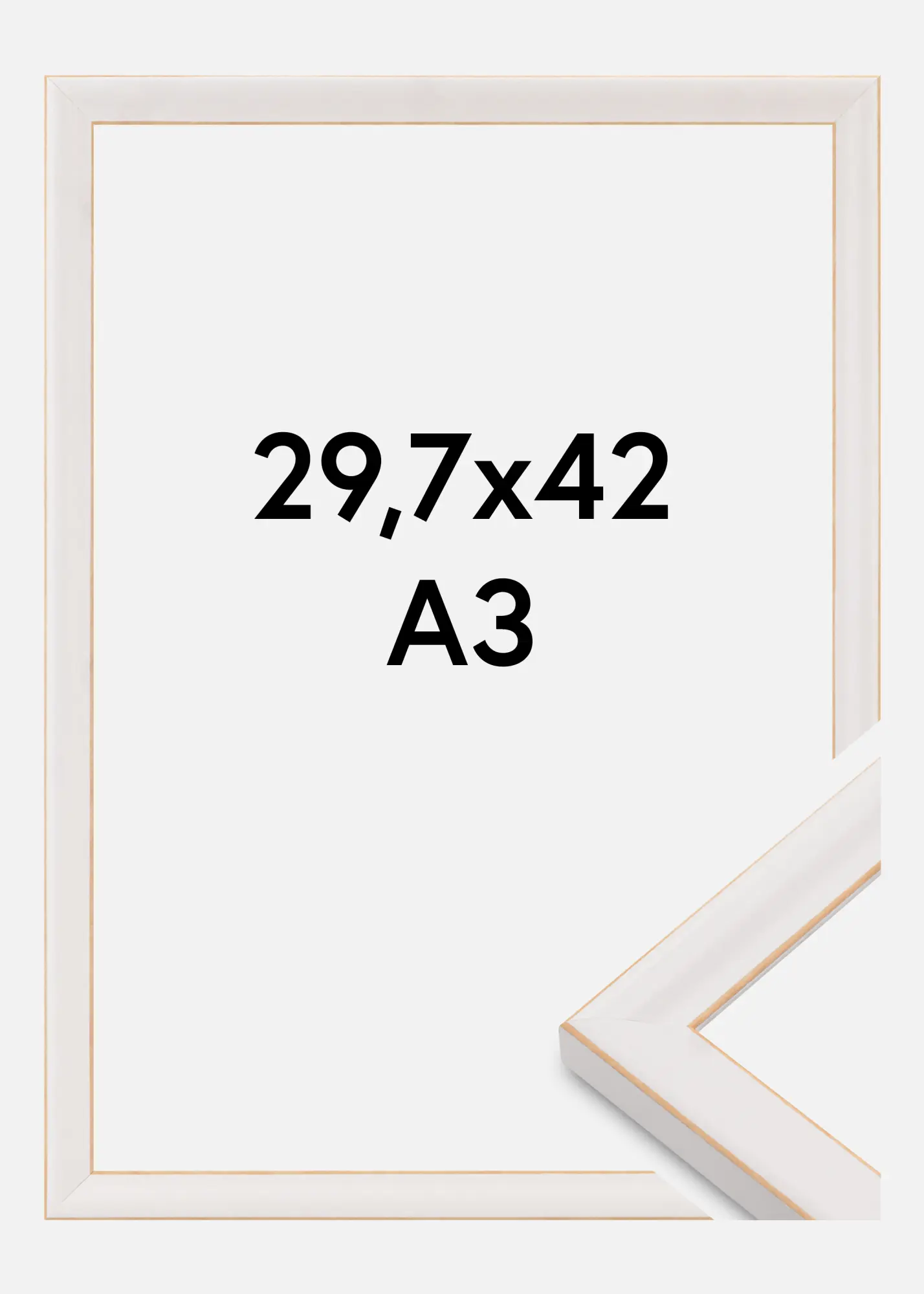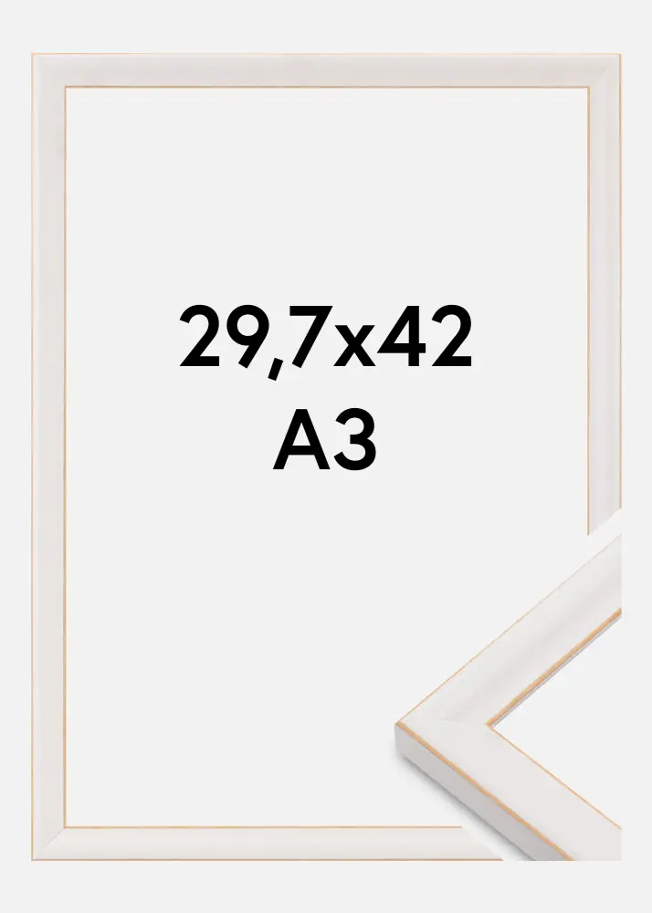 Rama este fabricată din lemn și are o listă de ramă de 20 mm lățime și o adâncime de 16 mm. Detaliul fin de aur de-a lungul marginii interioare încadrează imaginea cu o senzație exclusivistă. Cu dimensiunea sa de 29,7 x 42 cm, se potrivește perfect pentru motivele în format A3. Această ramă foto este dotată cu suporturi metalice pe partea din spate, ceea ce face ușor de agățat atât orizontal, cât și vertical, în funcție de nevoile tale.