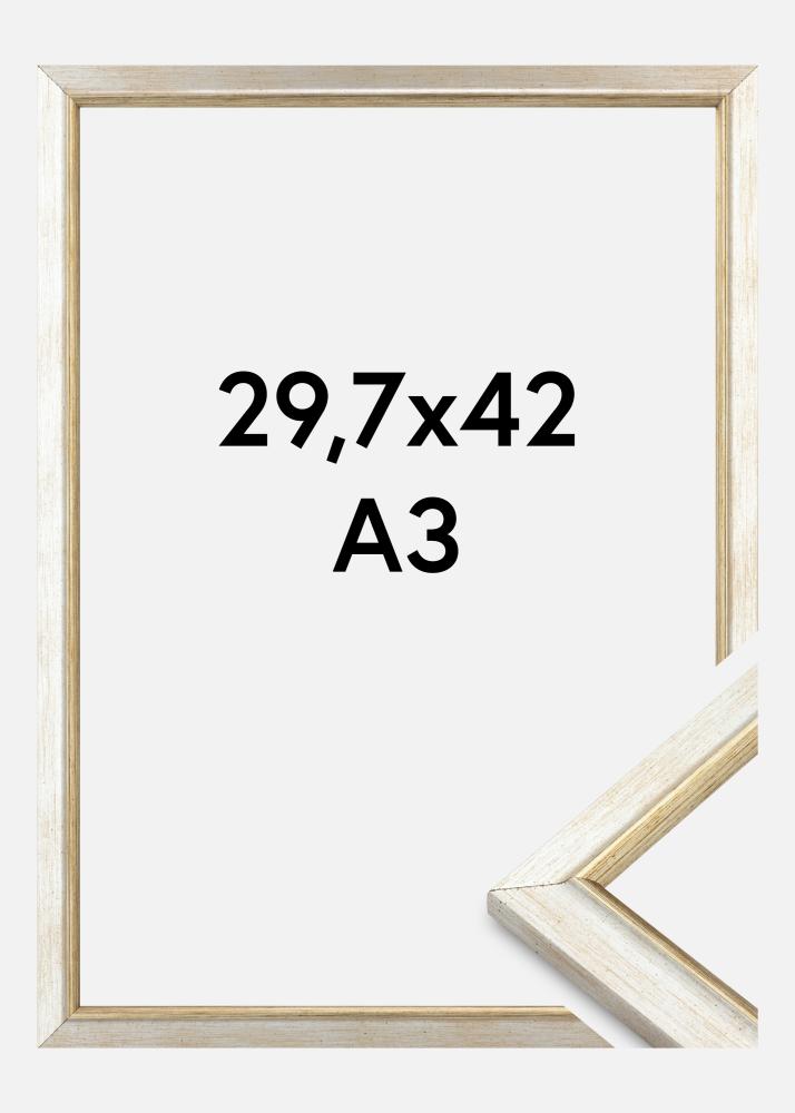 Această ramă foto elegantă, de culoare argintie, este o combinație perfectă între designul modern și farmecul clasic. Cu finisajul său subtil periat, oferă o notă sofisticată imaginilor și lucrărilor tale de artă. Rama este fabricată din lemn și are o lățime de 19 mm și o adâncime de 15 mm, oferind o senzație stabilă și robustă. Această ramă pentru tablouri este ideală pentru motive de dimensiunea 29,7x42 cm (A3), ceea ce o face perfectă pentru a expune imaginile sau lucrările tale de artă preferate.