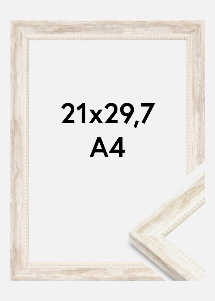 Această frumoasă ramă foto de dimensiunea 21x29,7 cm (A4) este o combinație perfectă de farmec rustic și eleganță stilată. Cu culoarea sa albă și marginea decorativă cu perle de-a lungul interiorului, oferă o senzație subtilă antică care îmbunătățește orice operă de artă sau fotografie. Această ramă de tablou este fabricată din lemn și are o listă de cadre lată de 25 mm și o adâncime de 19 mm, ceea ce îi conferă o senzație robustă și solidă.